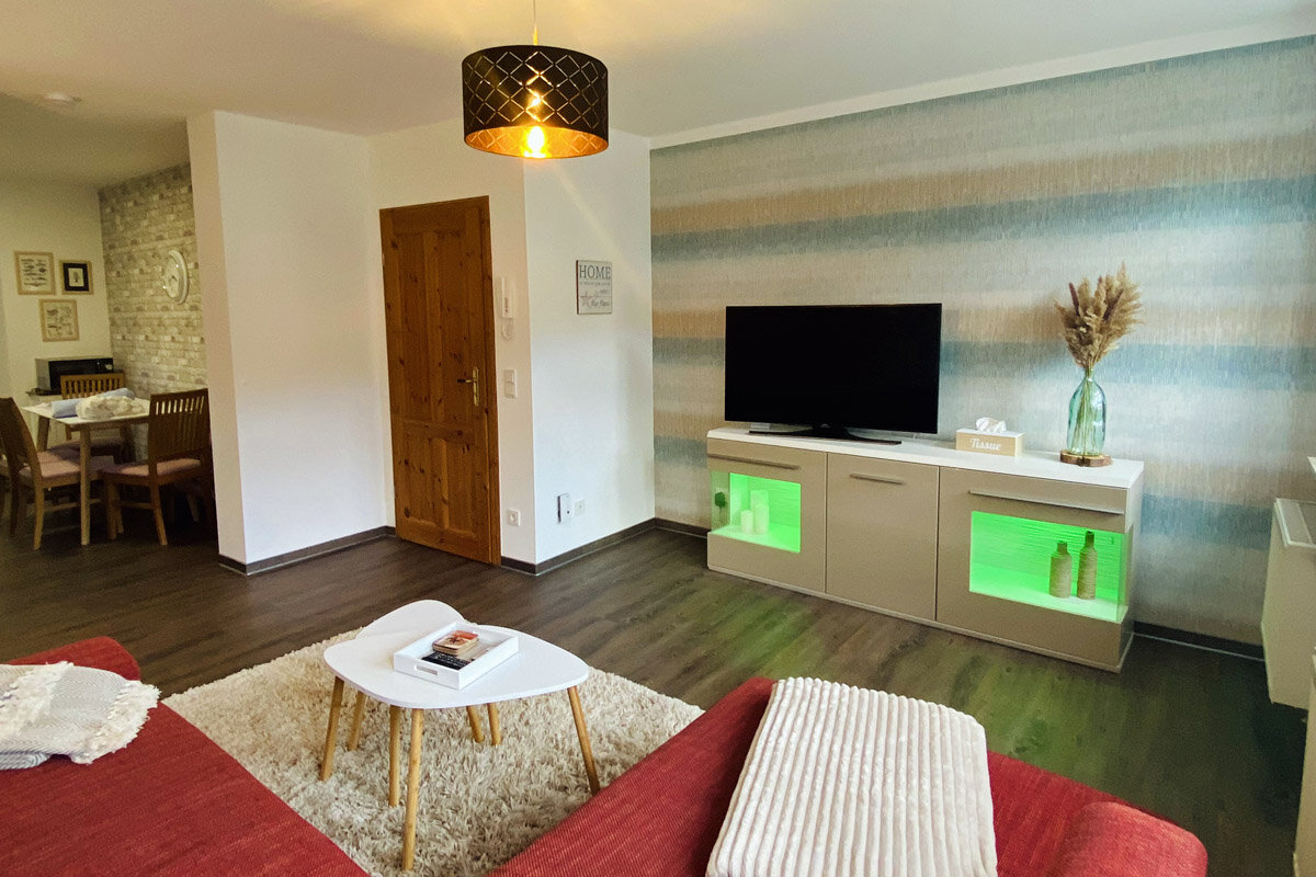 Die 70 m² Wohnung ist mit allem ausgestattet, was Sie für einen erholsamen Aufenthalt im südlichen Thüringer Wald benötigen.