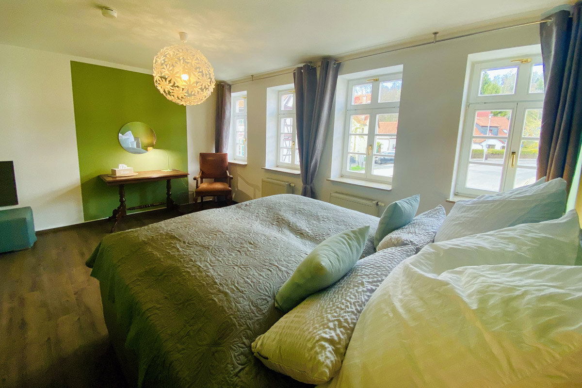 Die Ferienwohnung befindet sich direkt in der verkehrsberuhigten Zone des historischen Heinrichser Straßenmarktes von Suhl, umgeben von aufwändig restaurierten Fachwerkhäusern.