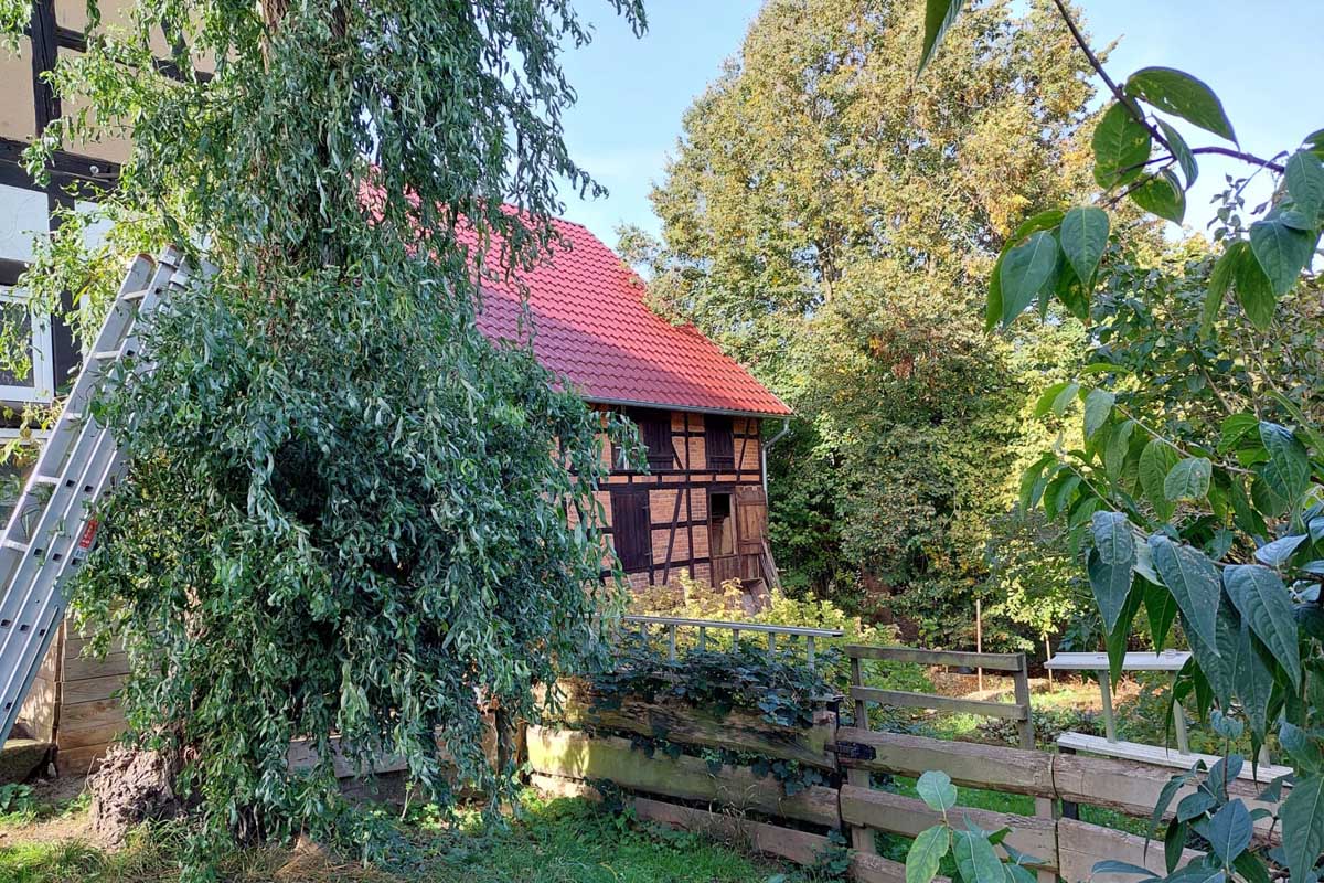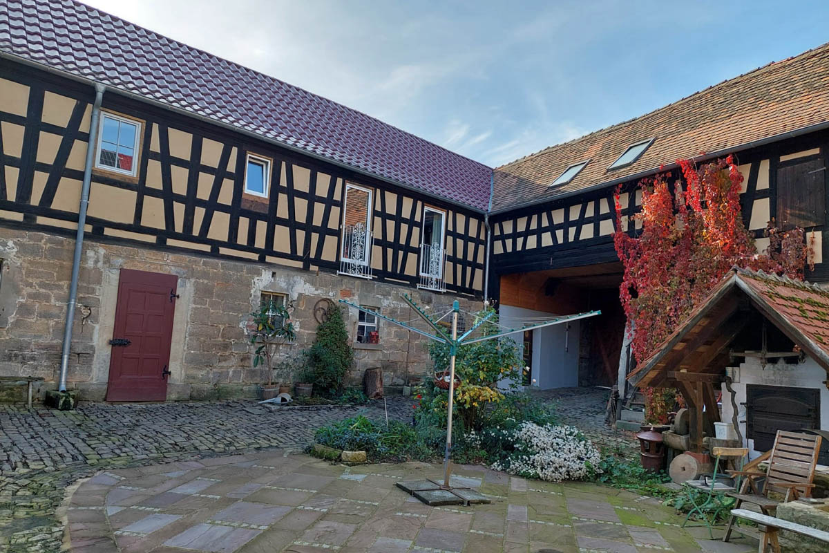 Sie sind Liebhaber historischer Bauernhöfe? Dann ist der Hof in Bollberg genau das Richtige für Sie! Der Hof wurde erstmals 1425 urkundlich erwähnt als Lehnhof des Günther von Bünau. Er ist die älteste Hofstelle in Bollberg, aus dieser Zeit ist der Gewölbekeller unter dem heutigen Wohnhaus erhalten. Die Gebäude wurden um 1860 in Fachwerkbauweise neu errichtet. Heute ist es einer der wenigen komplett erhaltenen 4-Seitenhöfe mit historischem Sandsteinpflaster in Thüringen. 2012 erwarben wir diesen Hof, um hier mit unserem Antikmöbelhandel und Möbel-Restaurationsbetrieb ansässig zu werden. Mit uns leben 2 Hunde und ein Kater.