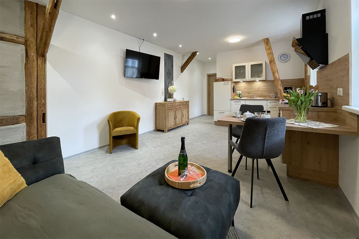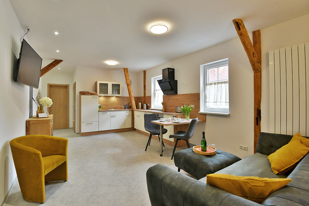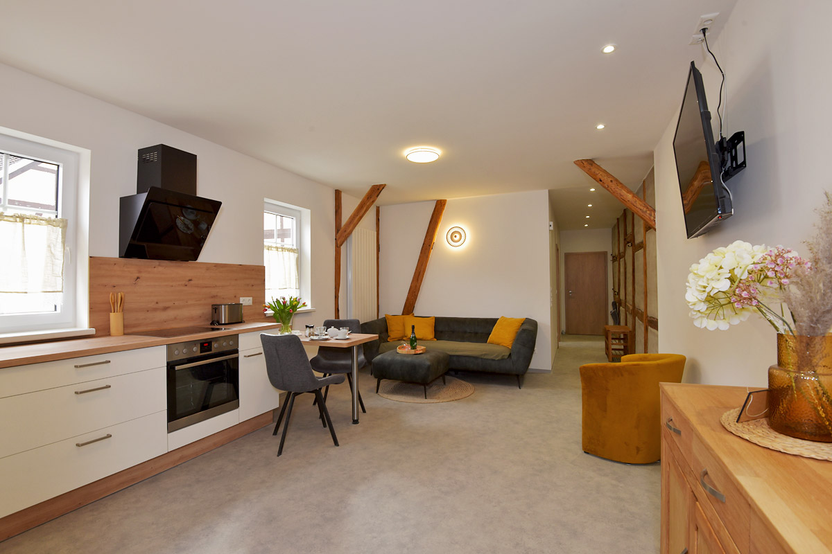 In unserem über 300 Jahre alten Fachwerkhaus erwarten Sie unsere neu renovierten, voll ausgestatteten und liebevoll gestalteten Ferienwohnungen.
