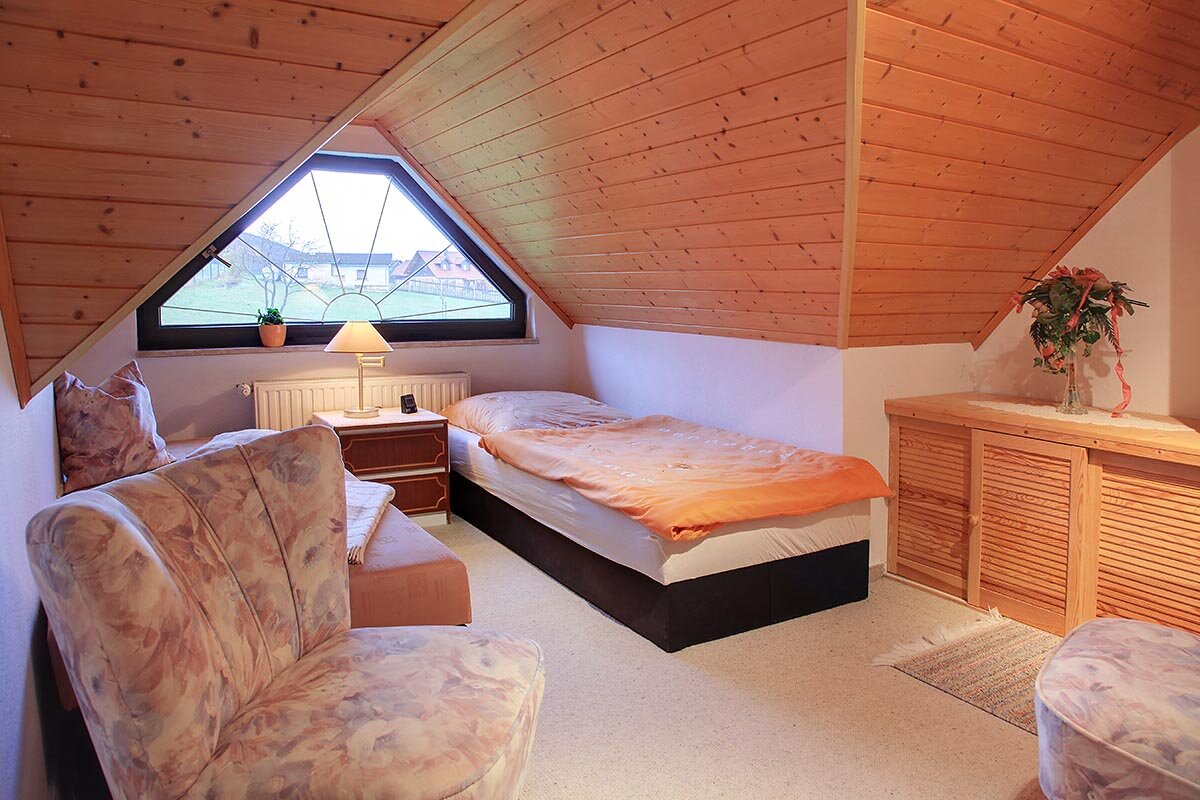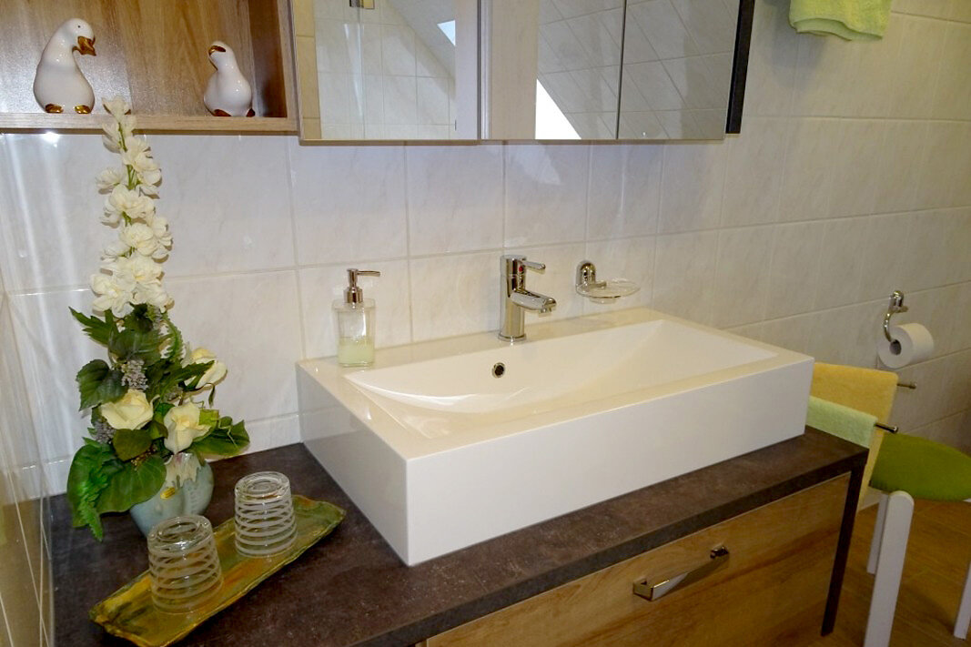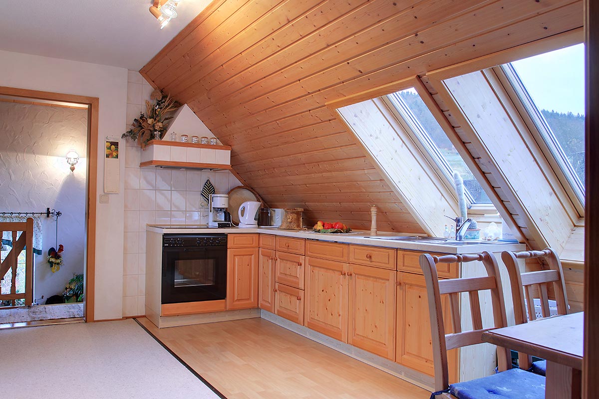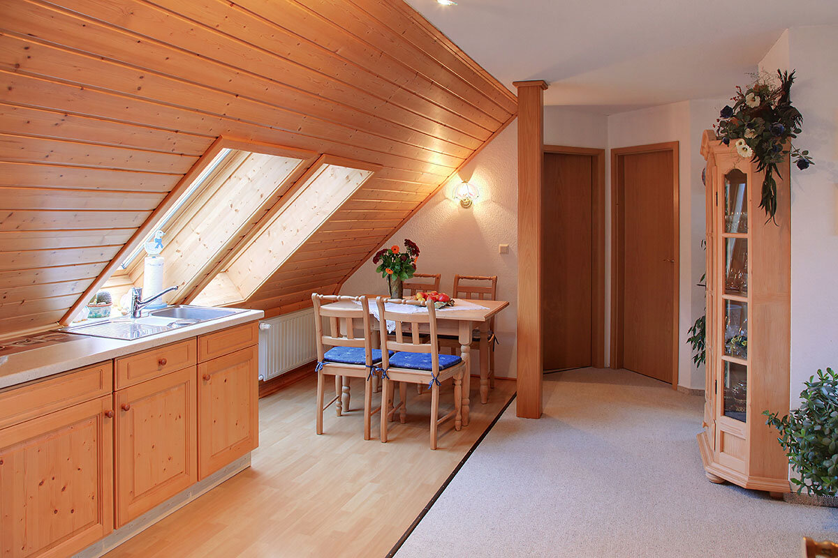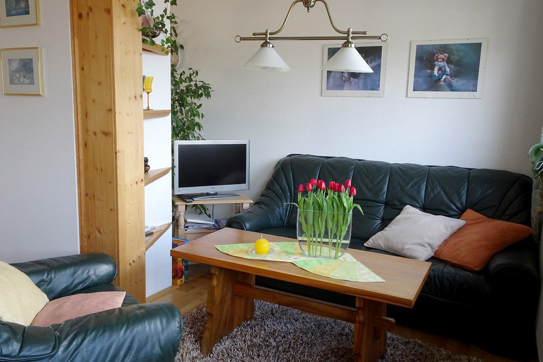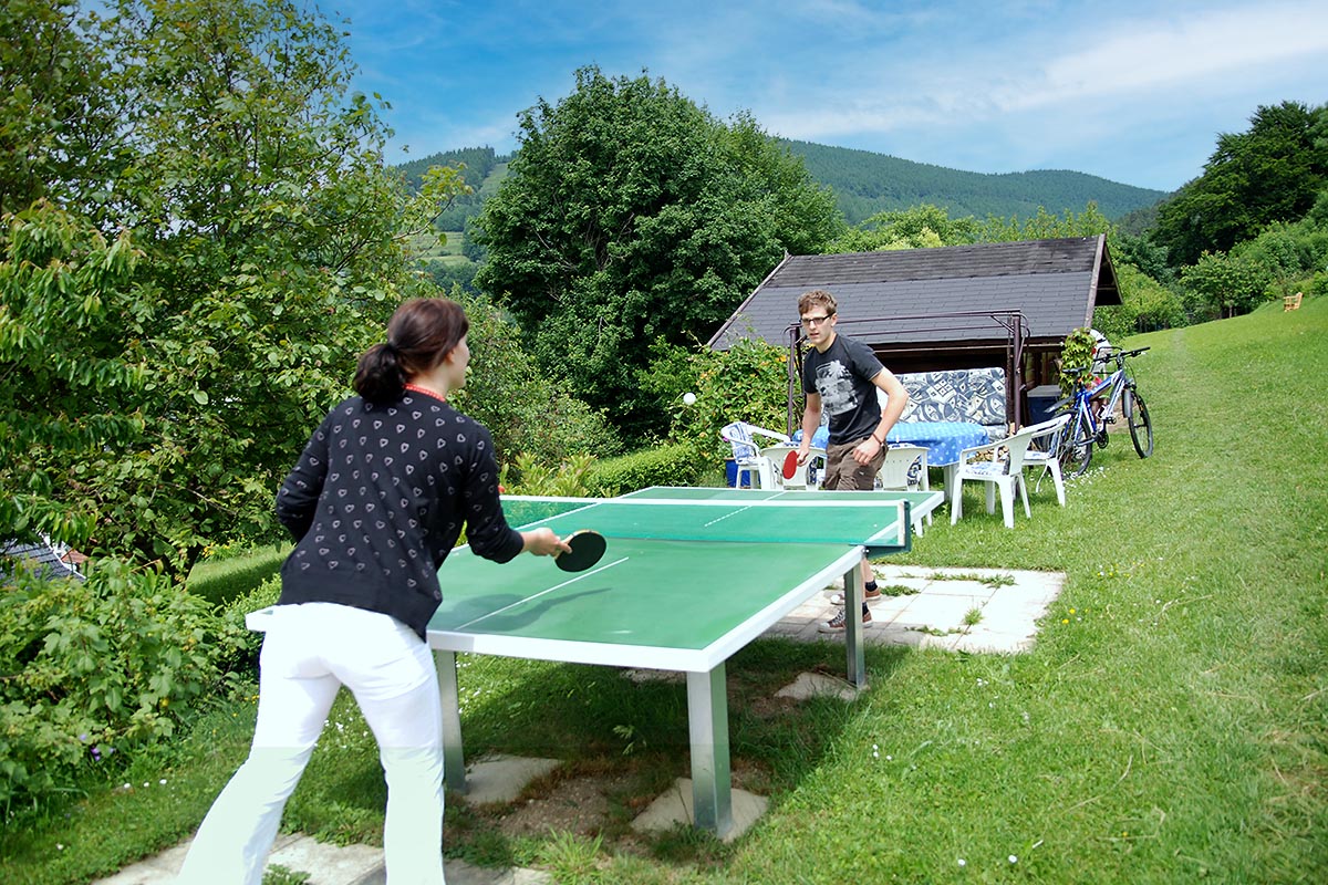 Sie hat einen großen Wohn- und Aufenthaltsraum mit einer modernen Küchenzeile, ein Schlafzimmer für 2 Personen und ein weiteres kleines Schlafzimmer, ebenfalls für 2 Personen. Das Bad ist mit Wanne, Dusche und WC ausgestattet. Abwechslung bietet auch an regnerischen Tagen unser Wintergarten im Erdgeschoss des Hauses mit Blick in den Garten. Zum Faulenzen lädt eine großzügige Liegewiese ein. Ein Grillplatz, Tischtennis, Freizeitspiele, Schlittenverleih ergänzen je nach Jahreszeit einen abwechslungsreichen Urlaubsaufenthalt.