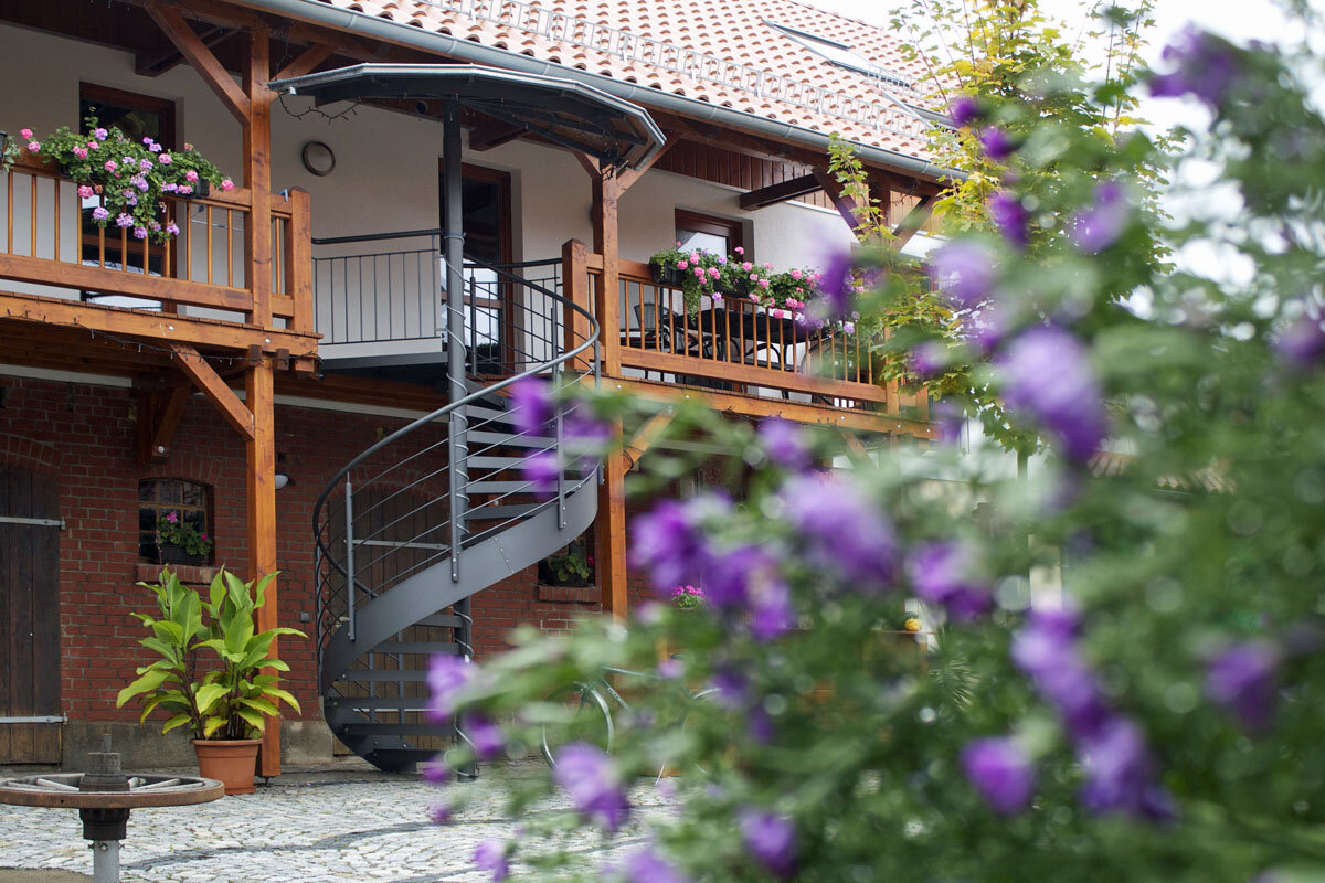 Die Ferienwohnungen liegen auf einem idyllischen vierseitigen Hof im Herzen der Nationalparkgemeinde Kammerforst und sind über eine Außentreppe erreichbar.