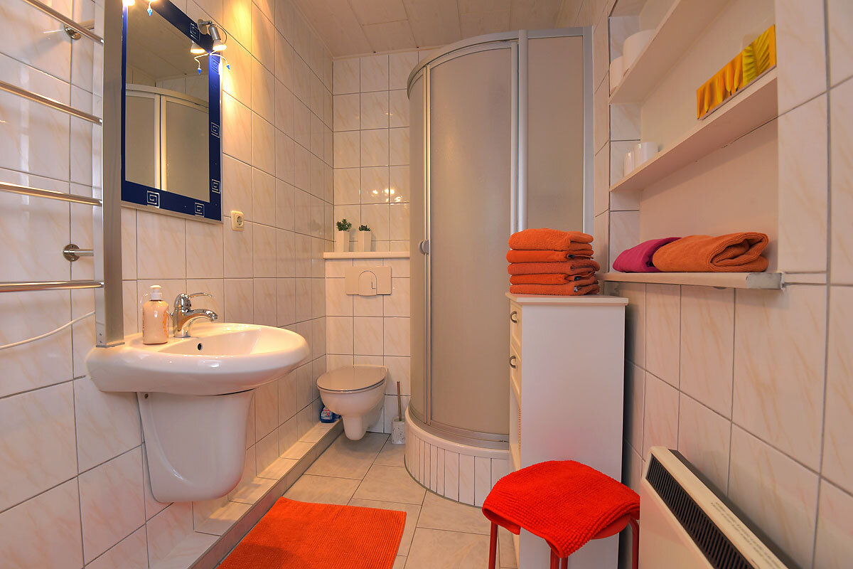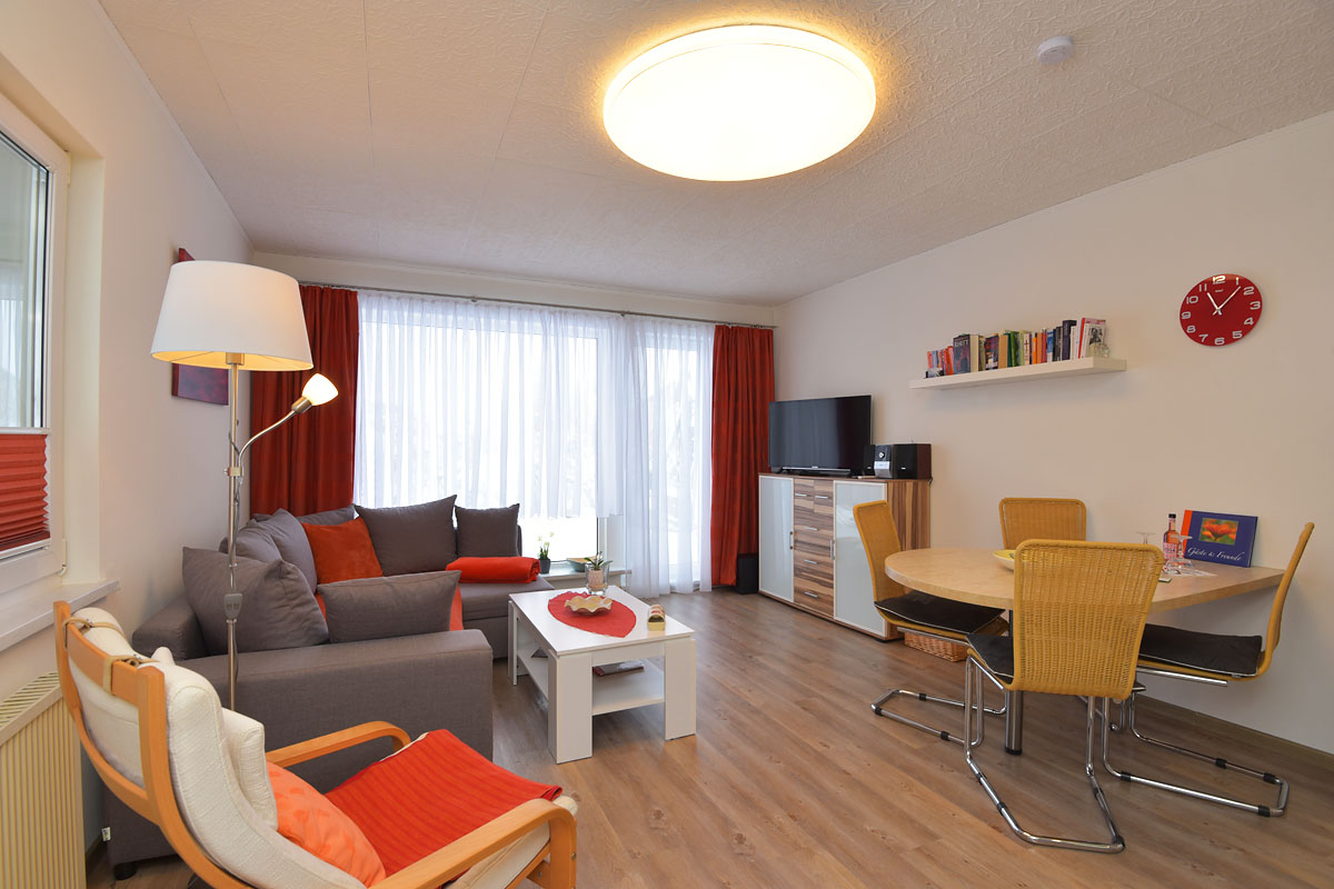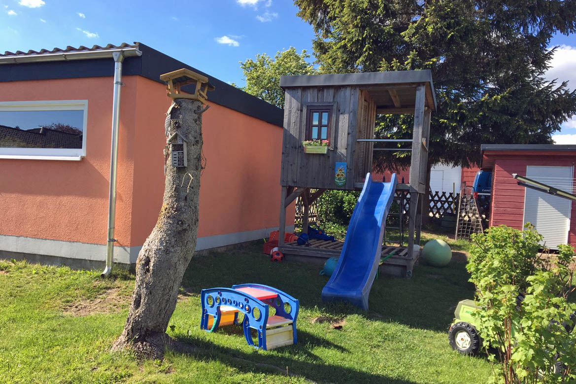 Das FH mit einer Größe von 70 m2 bietet einen gemütlich eingerichteten Wohnraum mit Fernseher, CD-Radio (Polsterecke zum Ausziehen), eine komplett eingerichtete Küche und einen Flurbereich. Das Schlafzimmer verfügt über ein Doppelbett (schön groß mit einer Höhe von 50 cm - ideal für ältere Gäste) und einen Radiowecker. Ein Badezimmer mit Dusche/WC und Fön ist natürlich auch vorhanden.