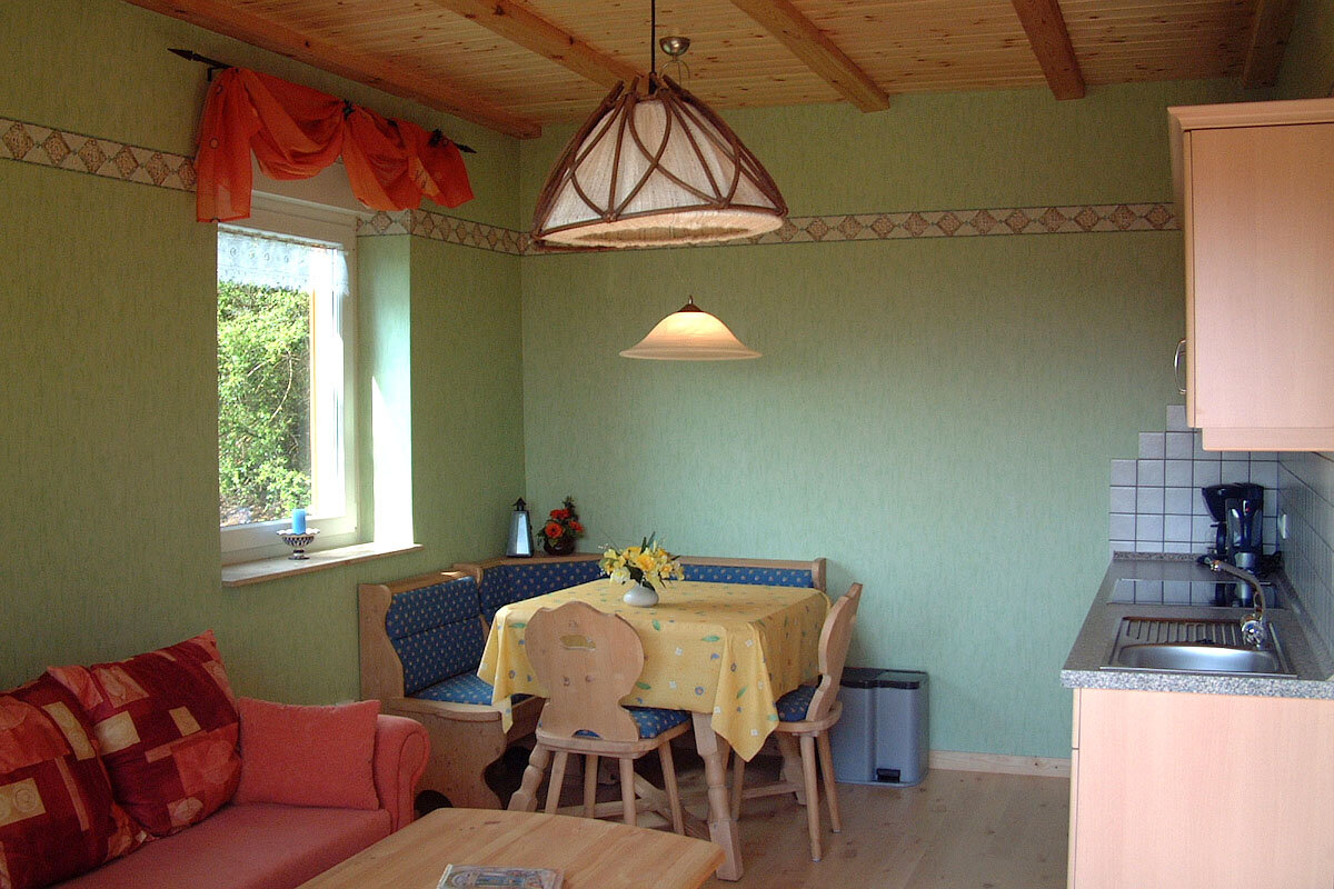 Unsere Ferienhäuser (insgesamt 7 Personen) befinden sich unmittelbar am Wald, in sehr ruhiger Südhanglage und sind ganzjährig nutzbar.