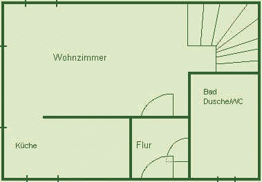 Im Erdgeschoss befinden sich neben einer Küche und einem neu gestaltetem Bad (Dusche/WC) ein großes Wohnzimmer.