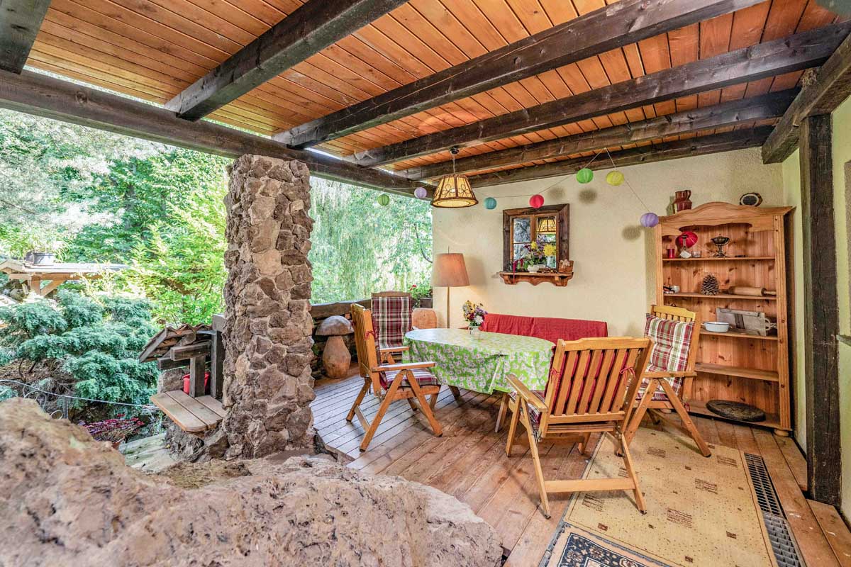 Der Garten bietet Sitzecken in versteckten Nischen, eine alte Schmiede, einen Räuberkeller mit mittelalterlicher Schwarzküche (Partyraum), die Nachbildung der "Rotunde" aus dem Altensteiner Park, einen Bergwerksstollen und einen Kinderspielplatz mit Baumhaus. Bei uns können Sie sogar den Rennsteig mit Mailerstätte und Höhle in Miniatur erkunden.