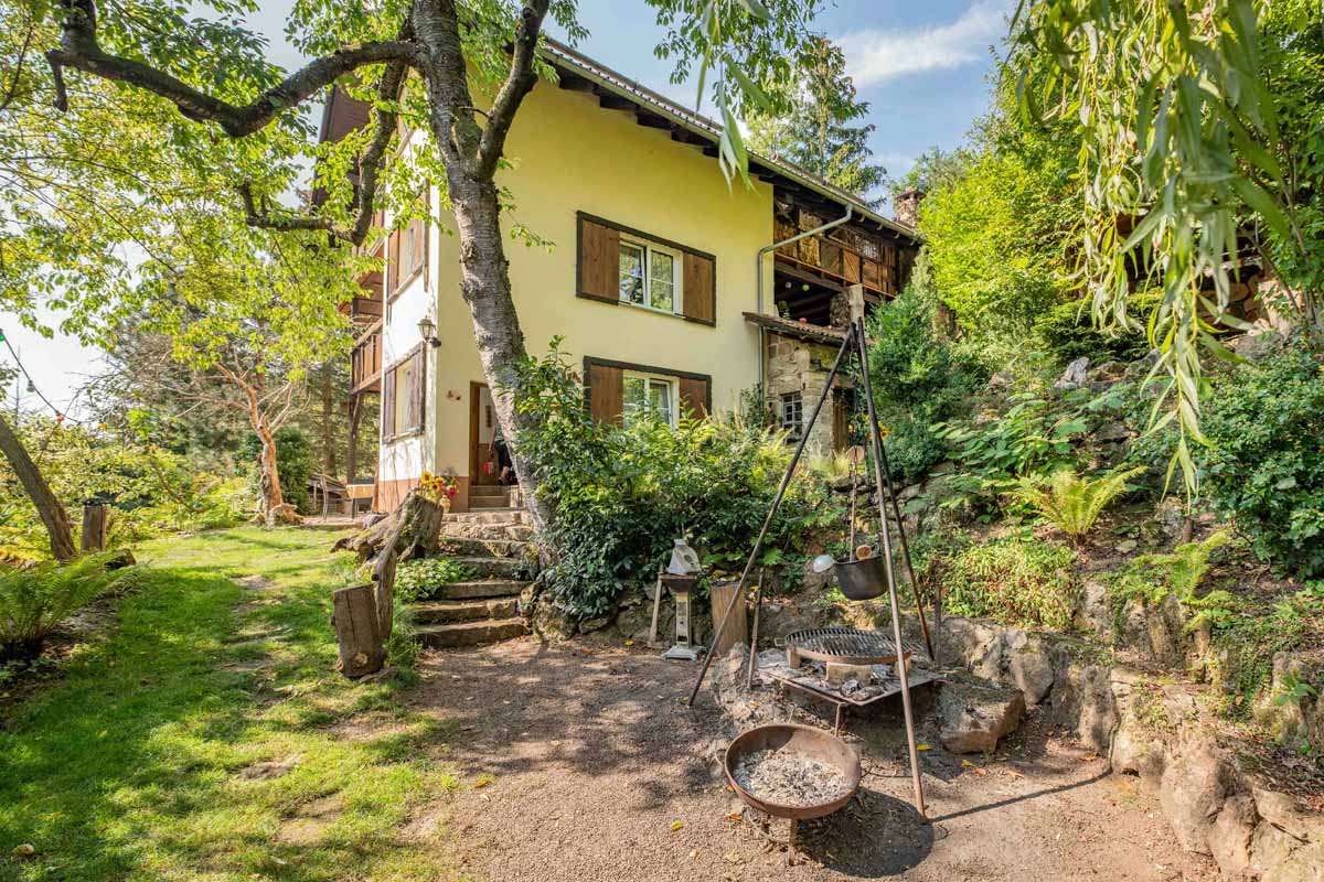 Besonders in der warmen Jahreszeit stellt unser Garten mit Blick über Steinbach seine überaus große Üppigkeit zur Schau.