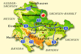 Unser kleiner Ort Burgwenden liegt im Landkreis Sömmerda, nicht weit weg von der Landeshauptstadt Erfurt und der Kulturstadt Weimar mitten im grünen Herzen Deutschlands. Eingebettet zwischen sanften Hügeln in wald- und wasserreicher Gegend finden Sie Erholung und Entspannung in unberührter Natur.