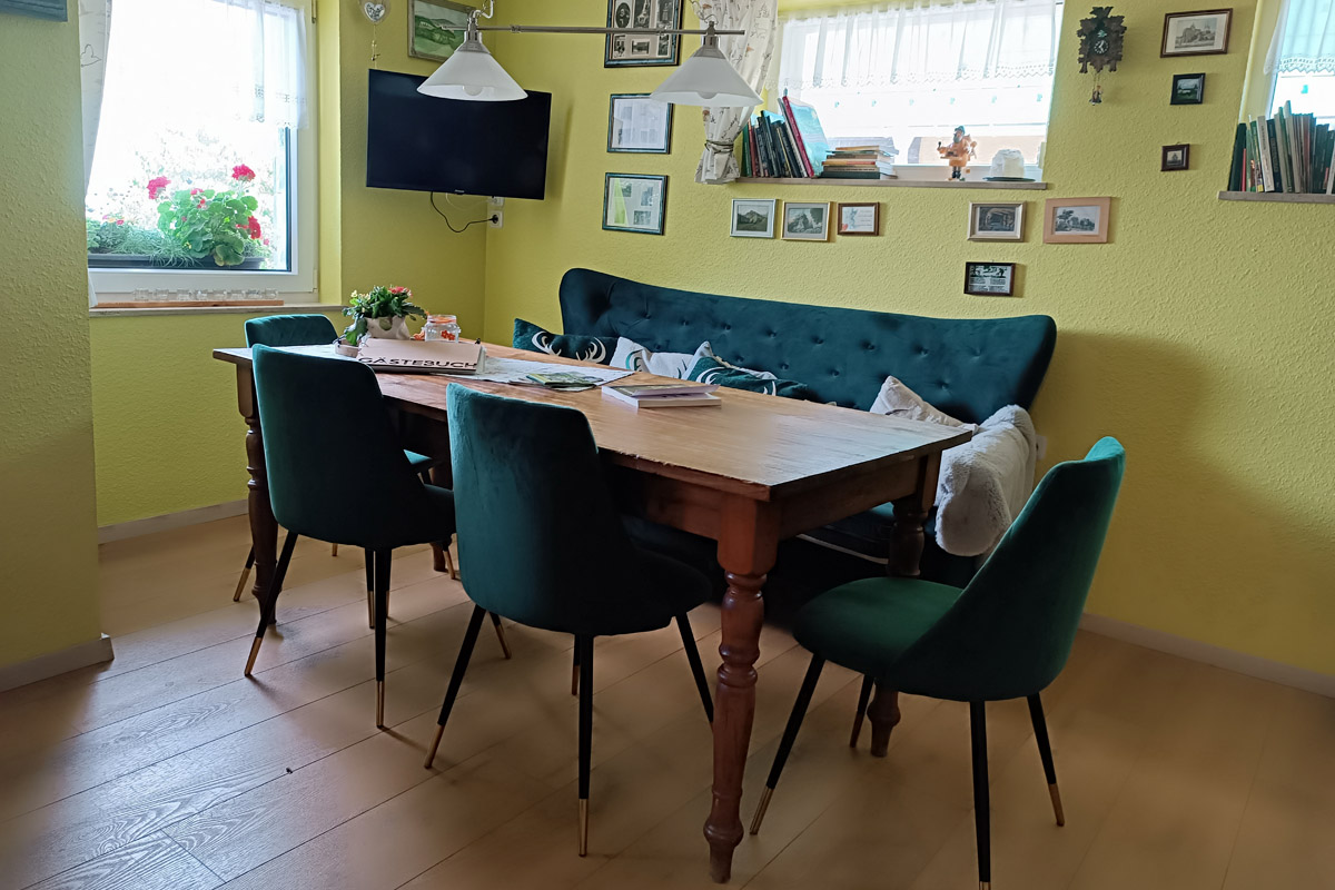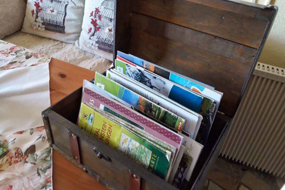 Specials: Hochbeete mit frischen Kräutern zur Selbstbedienung auf der Terrasse, Feuerschale mit Grill, Feuerzangenbowle, kleine Bibliothek, Spielesammlung, Wanderliteratur vorhanden, je FH ein Paar Walkingstöcke & ein Fernglas, Pilzgebiet in der Nähe, Kräuterbiotope, Wildbeobachtung