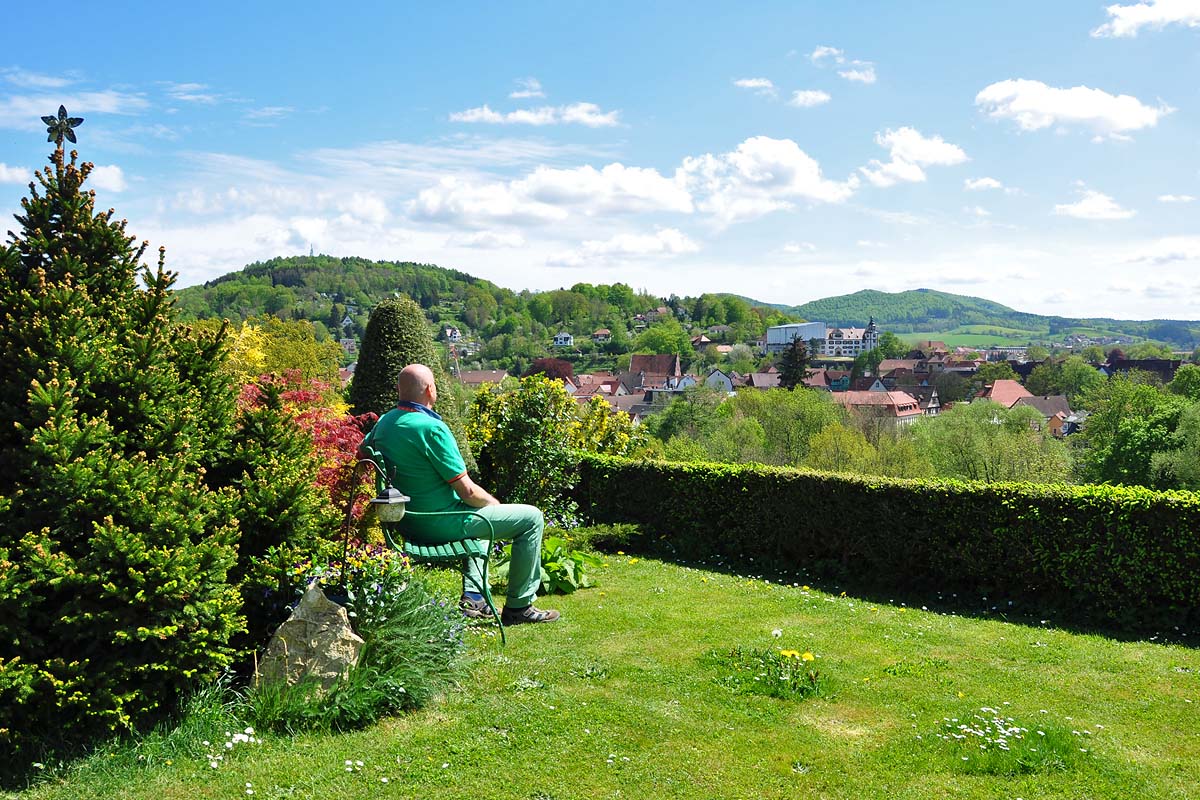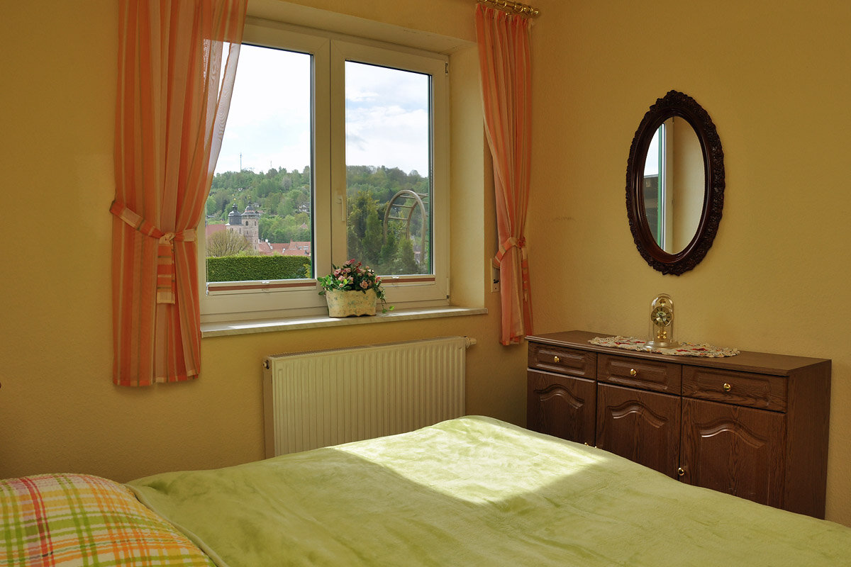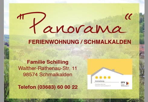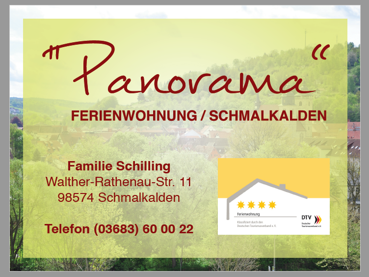 Wie es der Name sagt, bietet Ihnen unsere 4-Sterne Ferienwohnung (Souterain) einen herrlichen Panoramablick auf die Stadt Schmalkalden. Das Stadtzentrum erreichen Sie zu Fuß in ca. 10 Minuten.