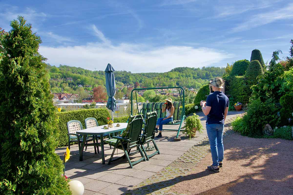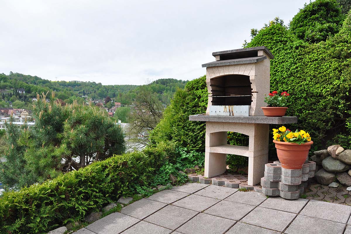 Um die schöne Aussicht zu genießen, können Sie natürlich die Gartenterrasse mit Grill nutzen.