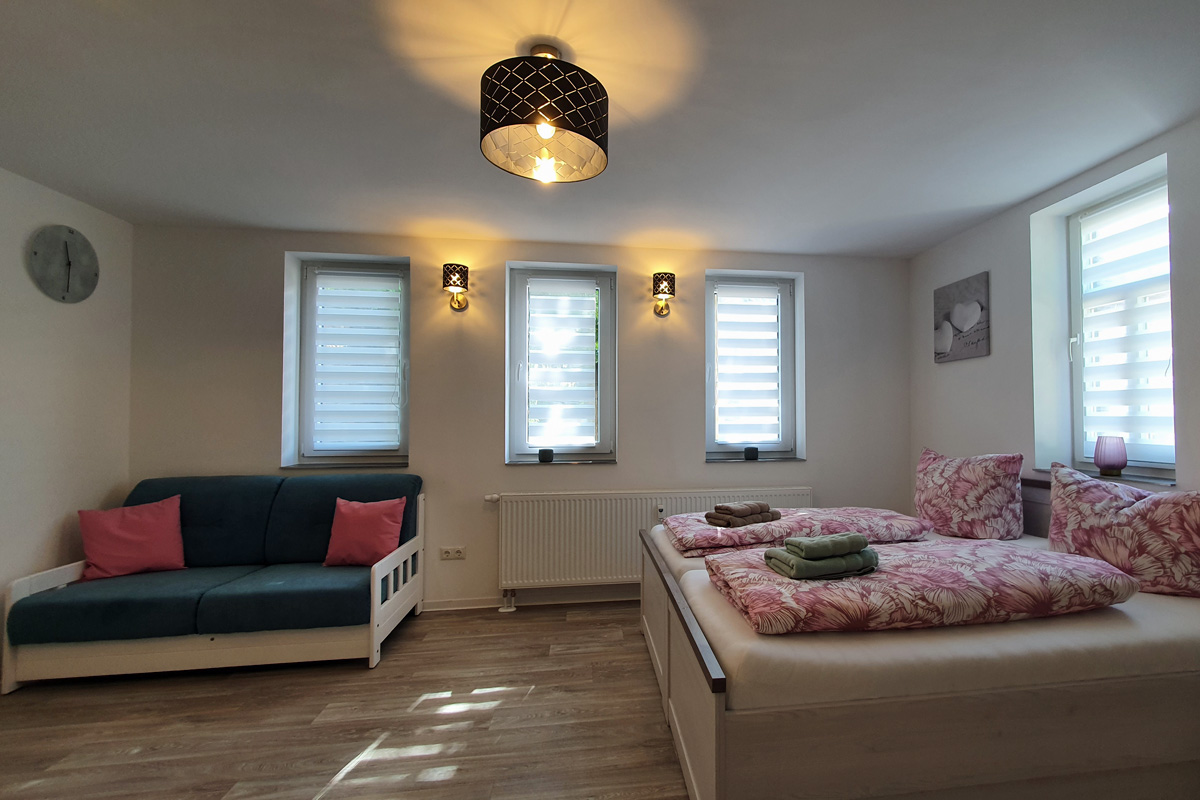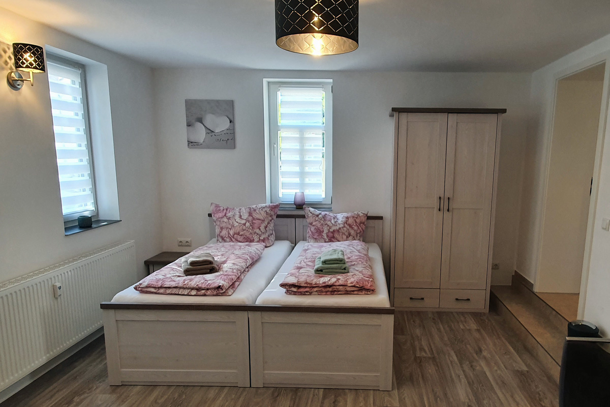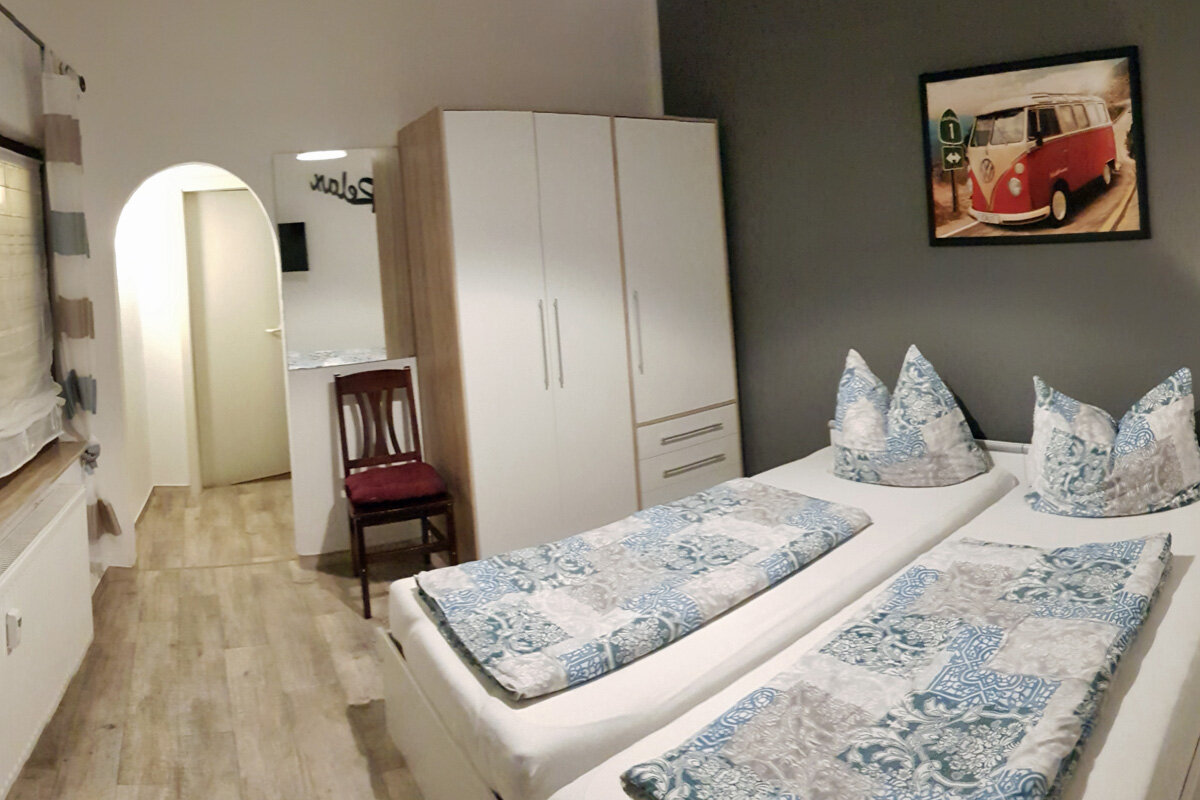 Die Wohnungen sind modern eingerichtet mit TV und Internet und bieten bis zu 8 Personen eine Übernachtungsmöglichkeit. In einem der beiden Zimmer befindet sich eine kleine Küche (Kühlschrank, Kaffeemaschiene, Toaster, Wasserkocher, Geschirr und Besteck), so dass auch eine Nutzung als Ferienwohnung möglich ist.