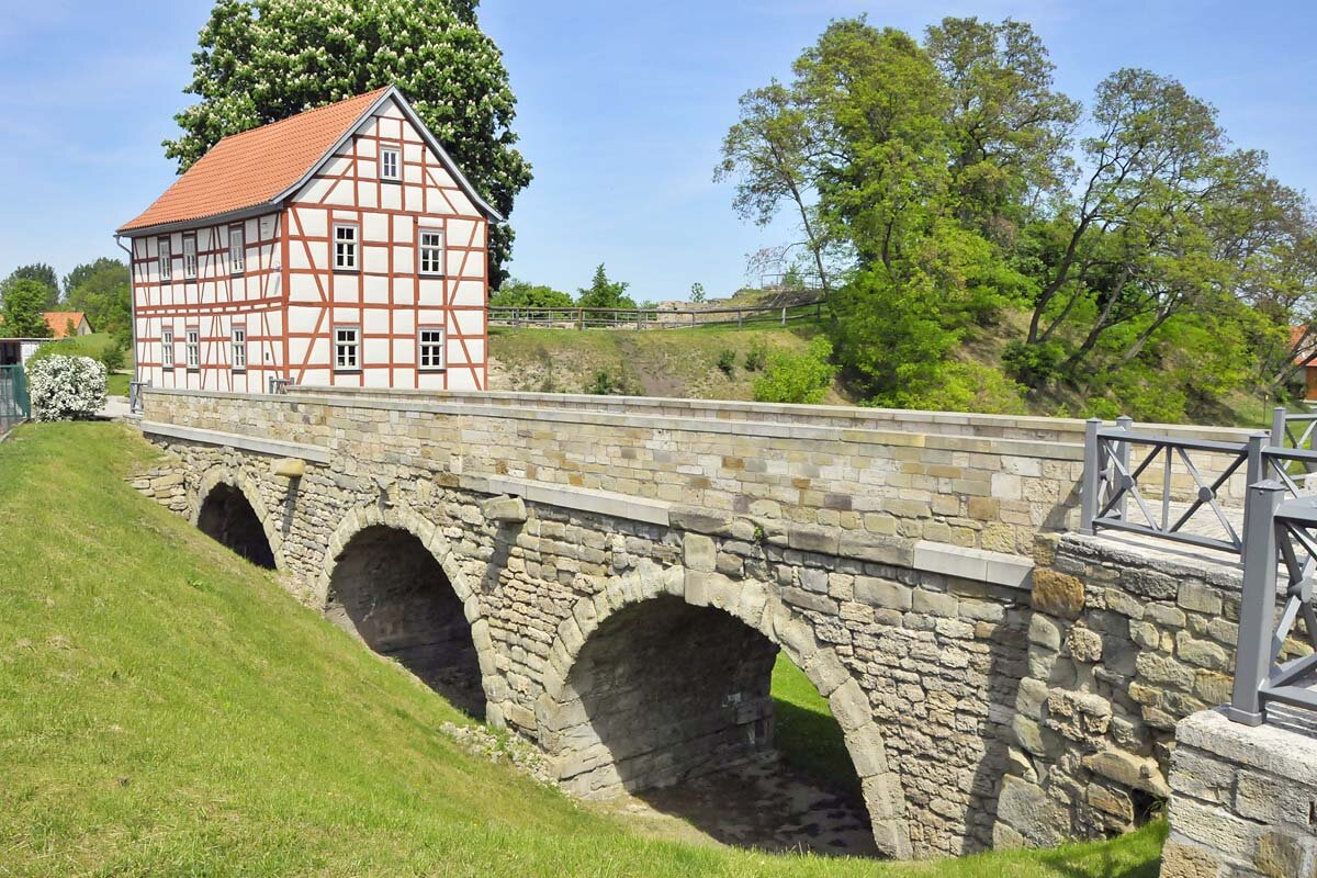 Von dem einstmaligen Herbslebener Schloss mit seinem Wallgraben sind nur noch Reste vorhanden. Es wurde bedauerlicherweise 1958 abgerissen. Seit 2000 finden auf diesem Gelände jedoch umfangreiche Freilegungsarbeiten statt. Heute sind Teile des Mauerwerkes aus dem 13. – 17. Jahrhundert sowie Keller, Verliese und die freigelegte Schlossbrücke wieder zu besichtigen.