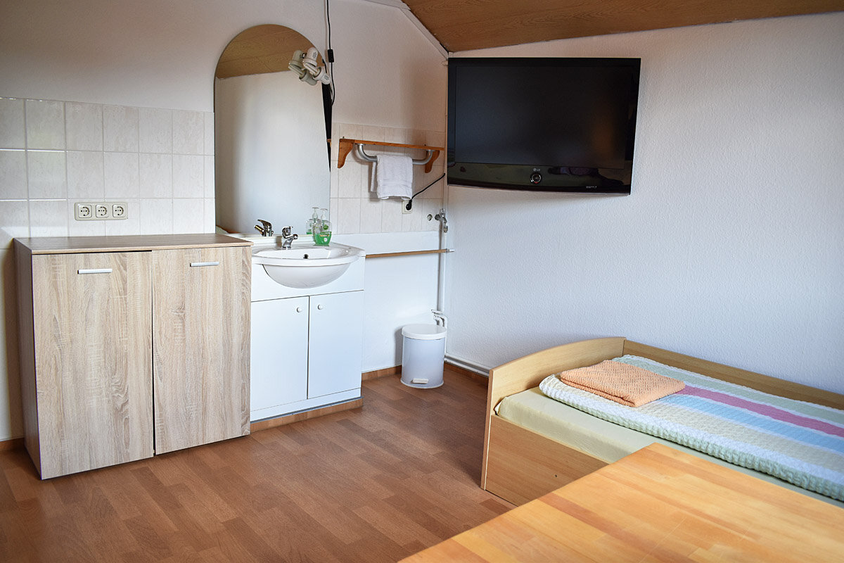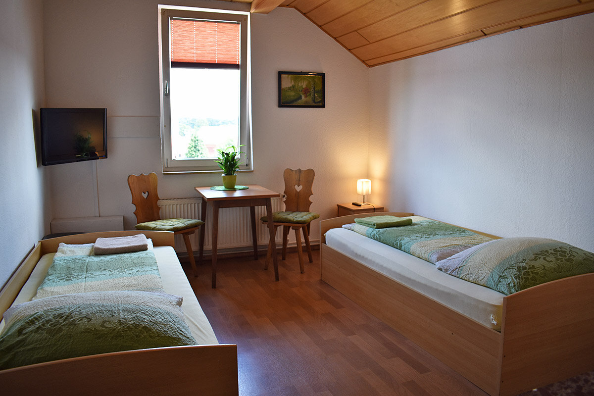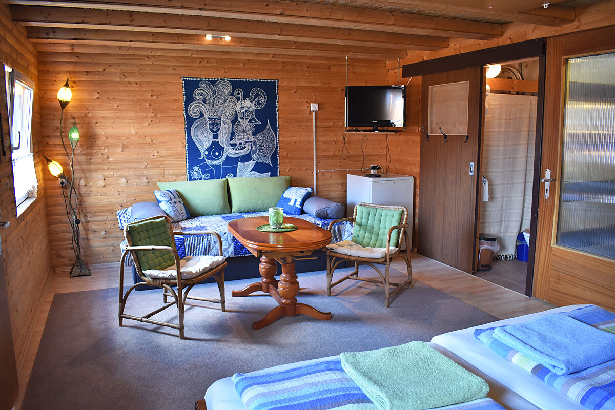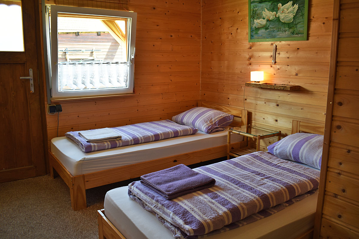 Im Haus stehen Ihnen 2 Mehrbettzimmer und 3 Zweibettzimmer zur Verfügung. Die Zimmer sind modern eingerichtet, teilweise mit Dusche/WC. Ein gemütliches Blockhaus mit einem Wohn-/Schlafraum und Dusche/WC für 5 Personen steht Ihnen außerdem noch zur Verfügung.