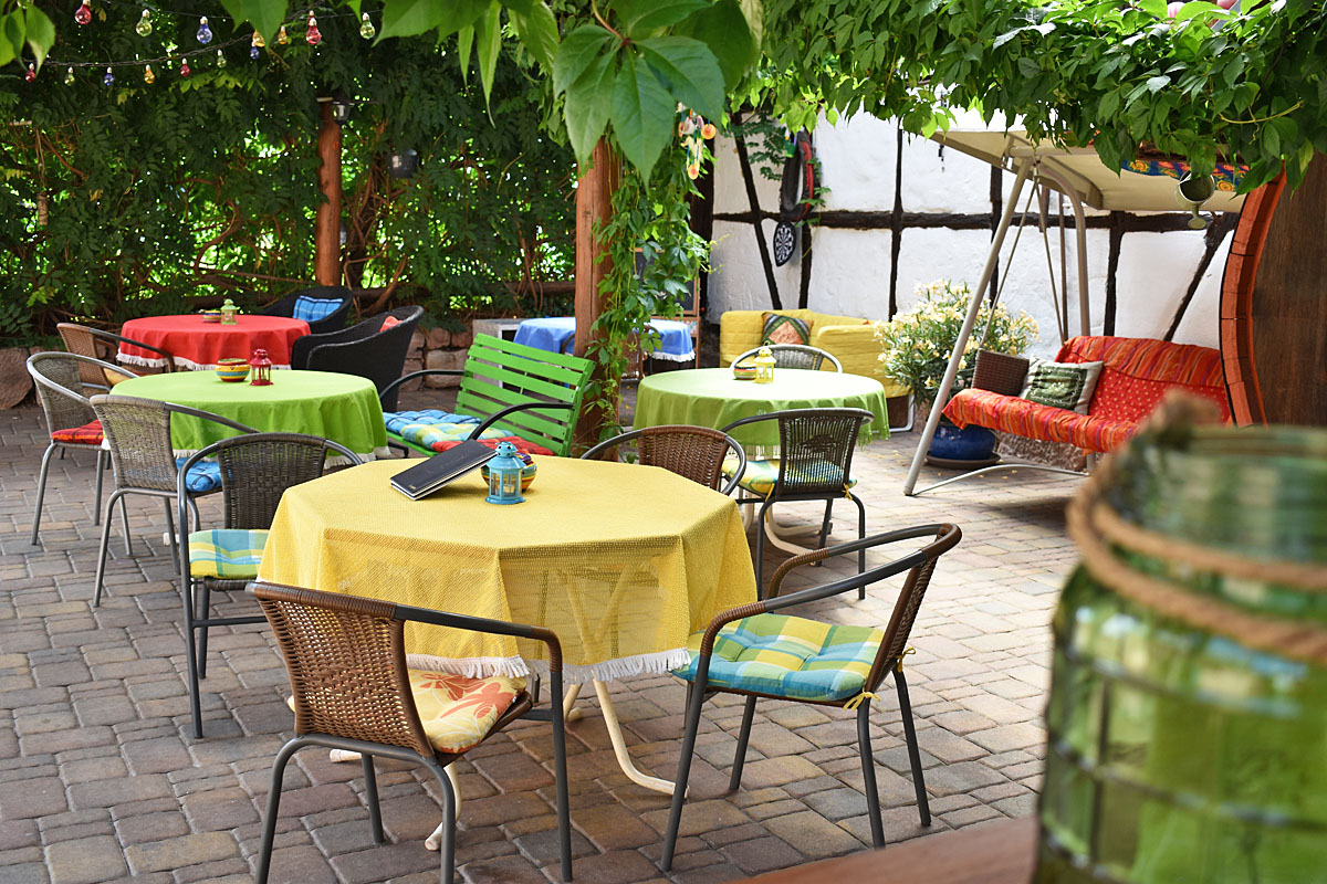 Der Biergarten lädt zu einem kühlen Radler ein, hier finden Sie immer ein ruhiges, schattiges Plätzchen.