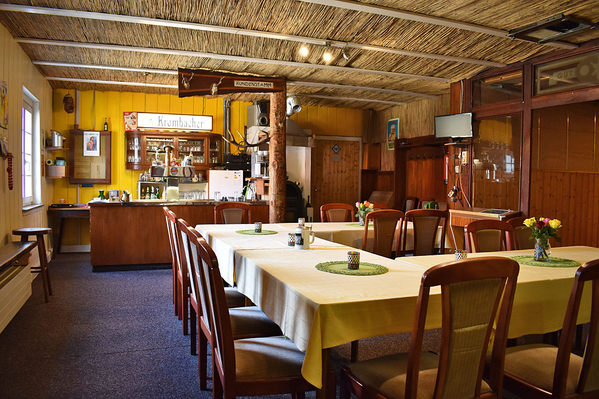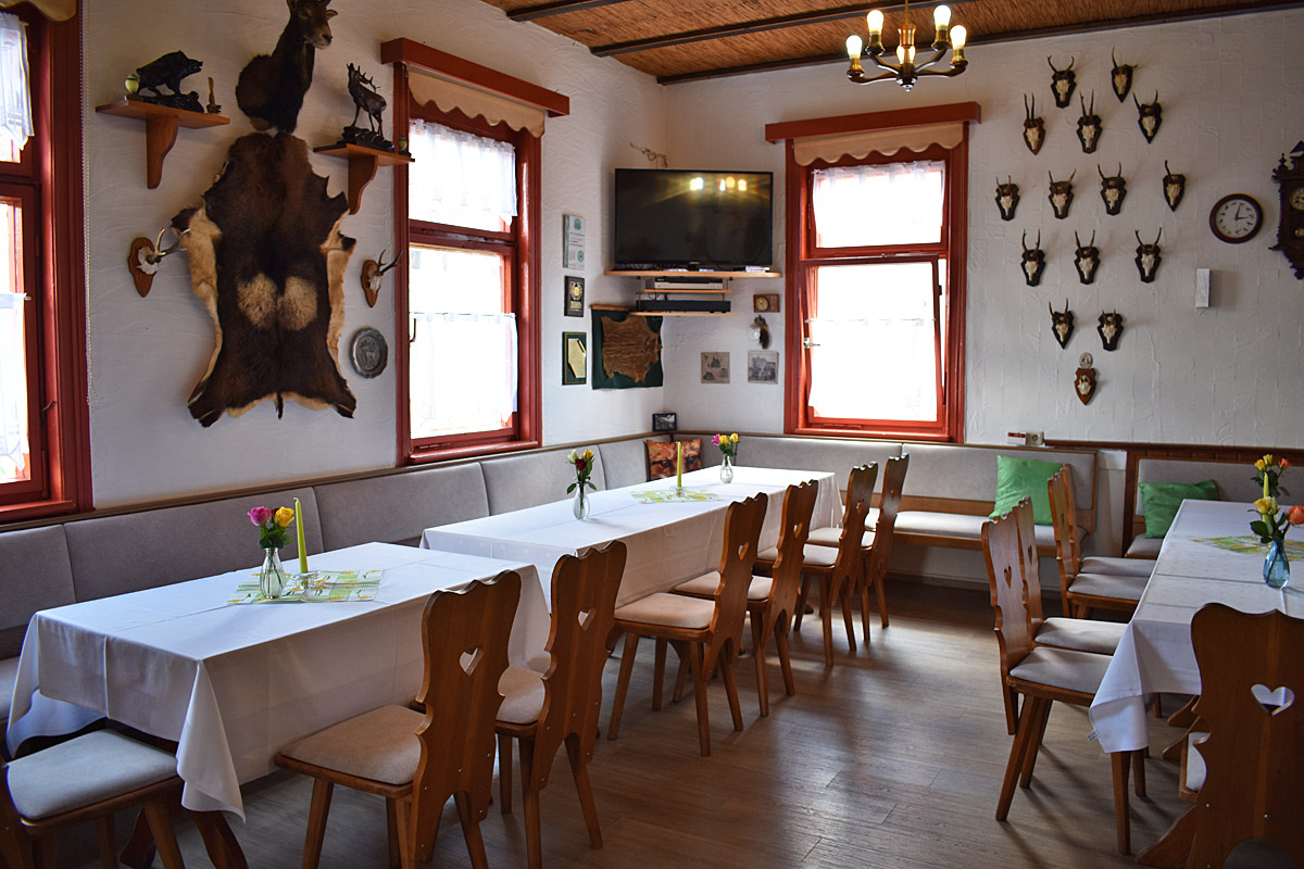Unser Gasthaus besitzt zwei urig eingerichtete Gasträume für max. 45 Personen. Unsere Küche bietet gute und schmackhafte Thüringer Hausmannskost. Gerne richten wir auch Ihre Feierlichkeiten aller Art aus.