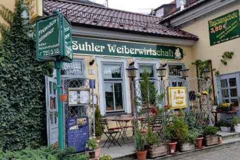 Bereits in der zweiten Hälfte des 19. Jh. wurde das Gebäude als Vereinshaus genutzt. 1956 entstand dort der erste Suhler Busbahnhof nebst Taxi-Zentrale und Gaststätte Espresso. Seit 1994 begrüßt Thomas Schäfer seine Gäste in der "Suhler Weiberwirtschaft".