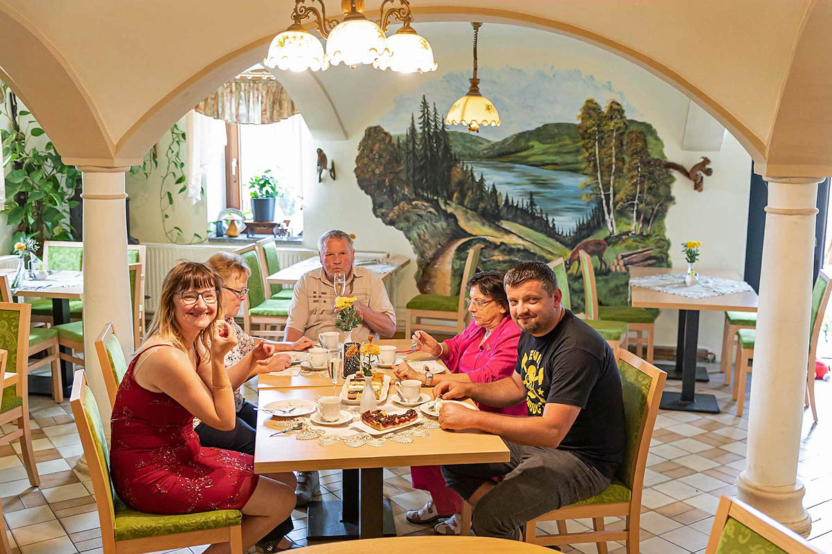 Wir freuen uns, Sie in unserer familiären Atmosphäre auf der Sonnenterasse mit Thüringer Hausmannskost und selbst gebackenen Kuchen & Torten verwöhnen zu können.