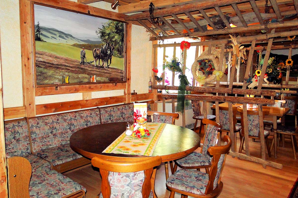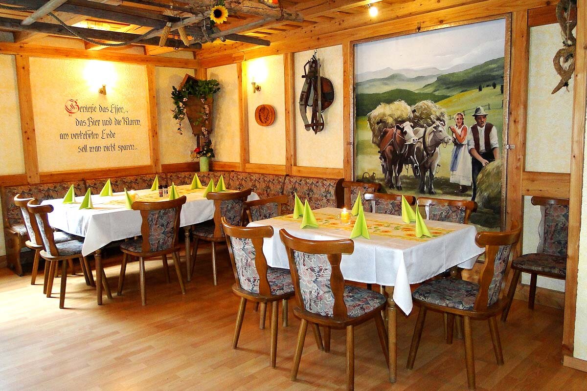 Unser Haus verfügt über 3 gemütliche und rustikal ausgestattete Gasträume und eine Kegelbahn.