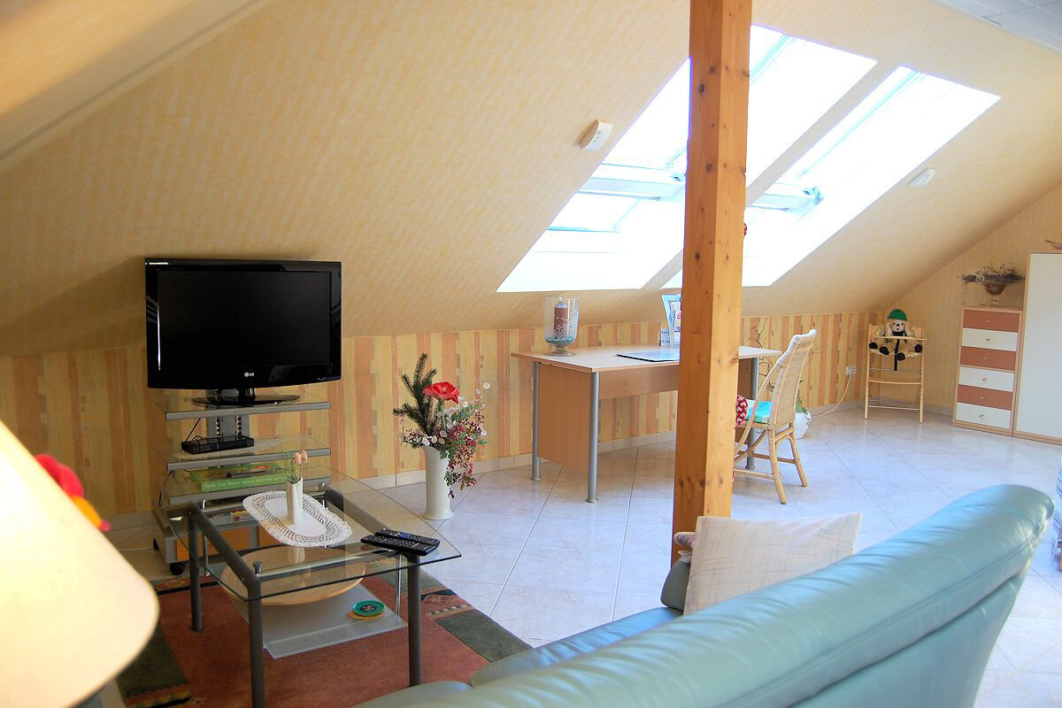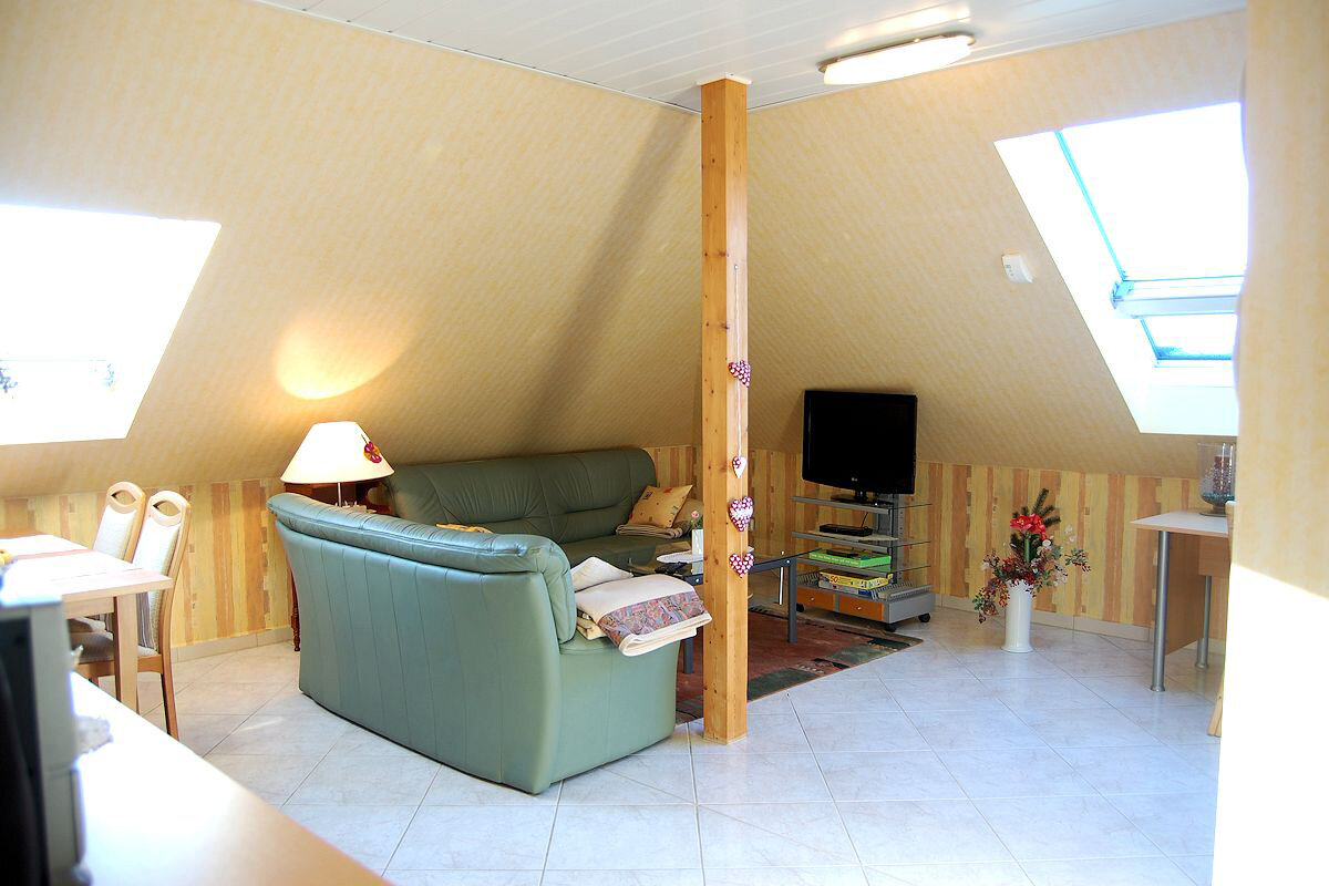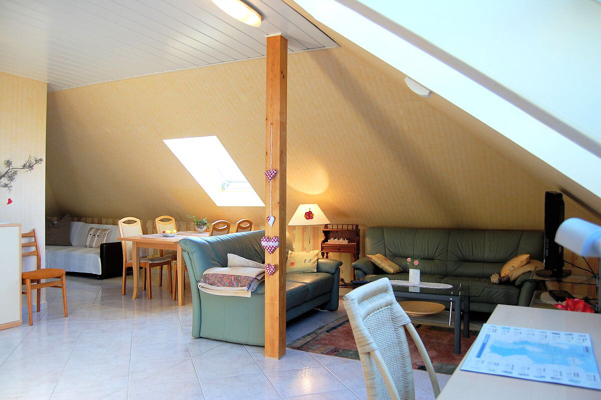 Das Wohnzimmer mit einer gemütlichen Sofaecke (Aufbettung mögl.), Sat-TV, Radio, Gesellschaftsspielen und Schreibtisch bietet Ihnen nicht nur an Regentagen Entspannung pur.