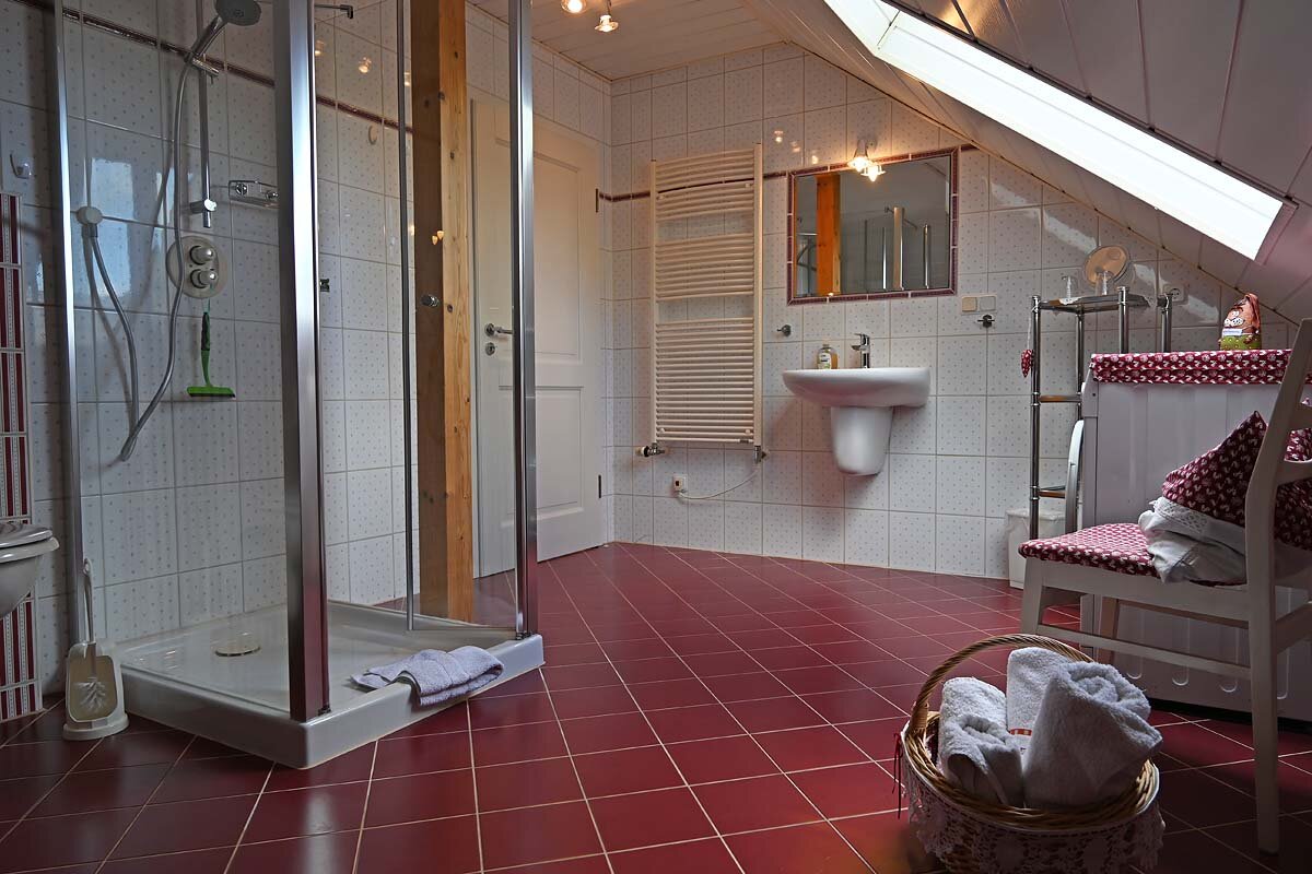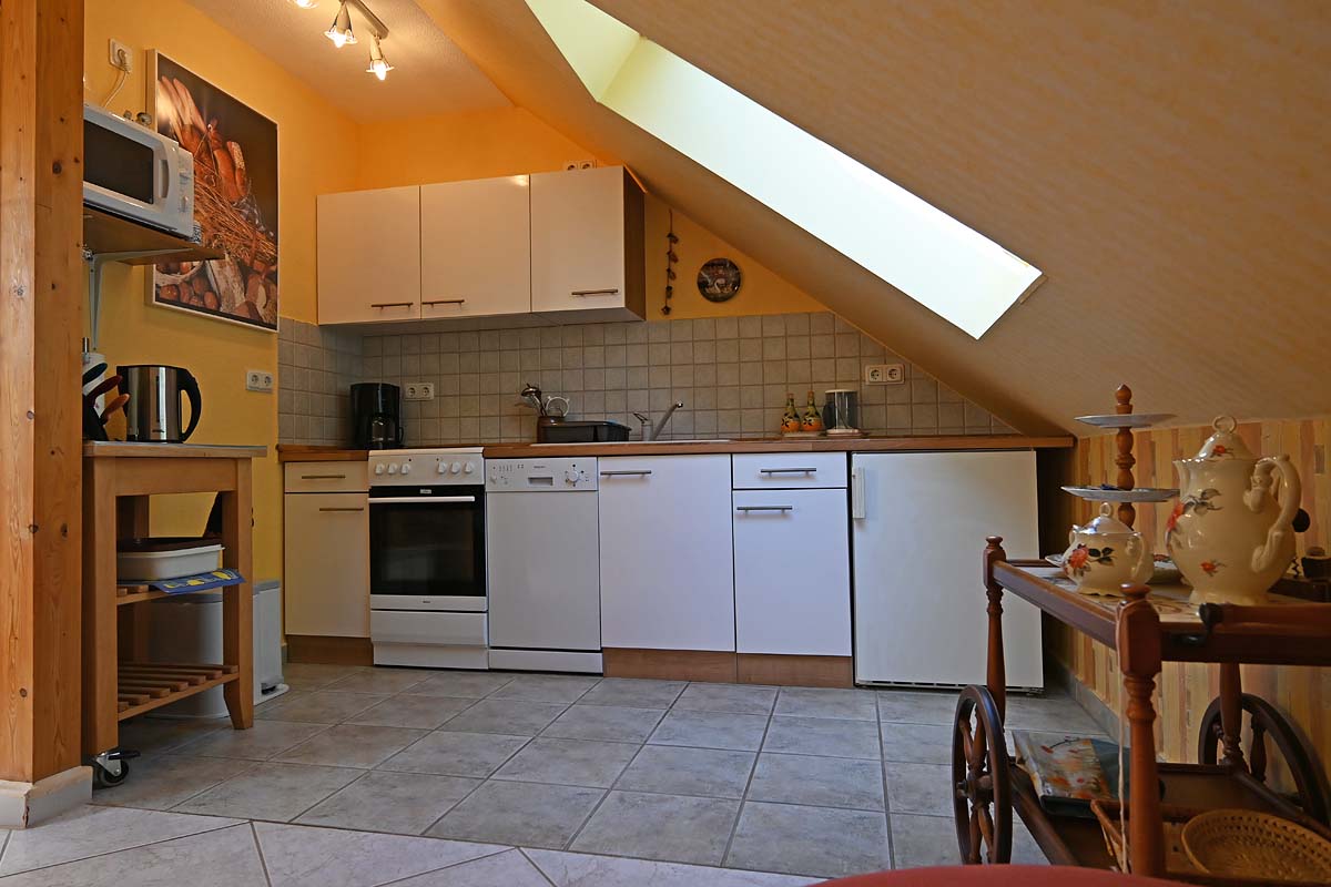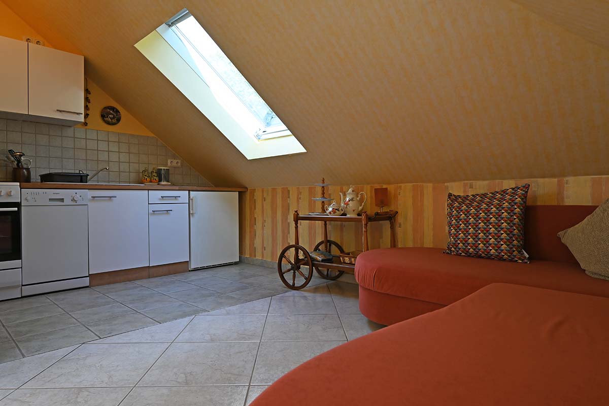 Unsere geräumige Ferienwohnung 1 (60 qm) für 2 Personen (2 Aufbettg. mögl.), ist mit jeglichem Komfort ausgestattet und bietet Ihnen ein ideales Zuhause in Ihren wohlverdienten Ferien. Die Wohnung verfügt über einen separaten Eingang, für ein ideales Raumklima sorgen Fußbodenheizung und komplett zu öffnende Dachfenster. Ein Carport für die Unterstellung Ihres PKW gehört ebenso zur Ausstattung.
