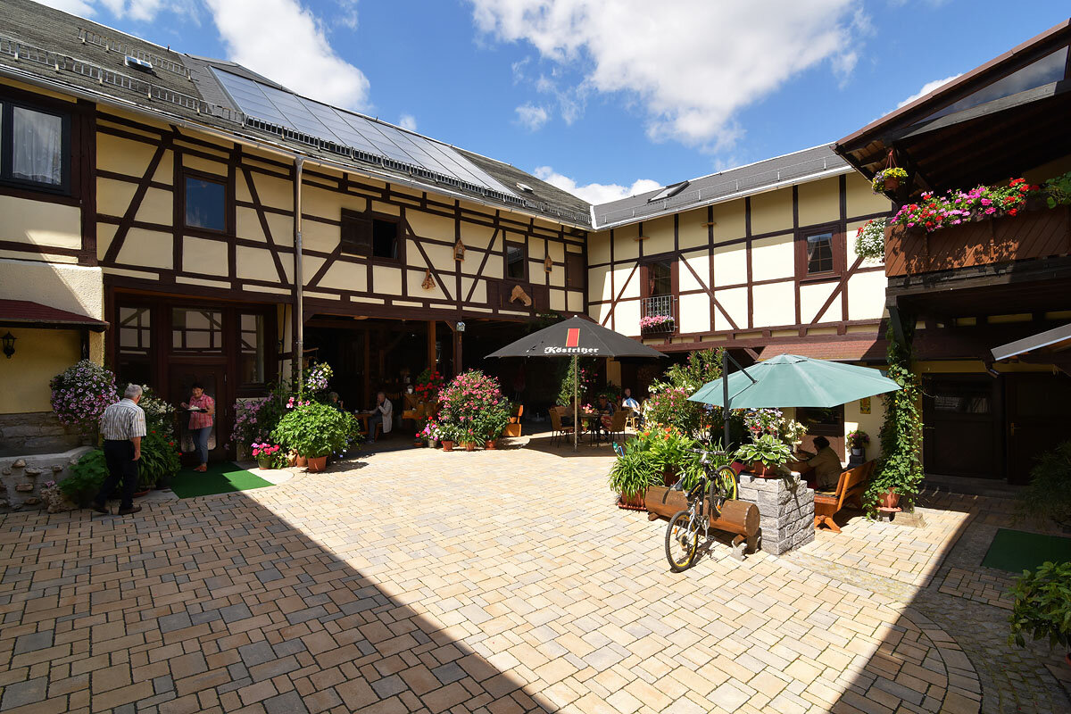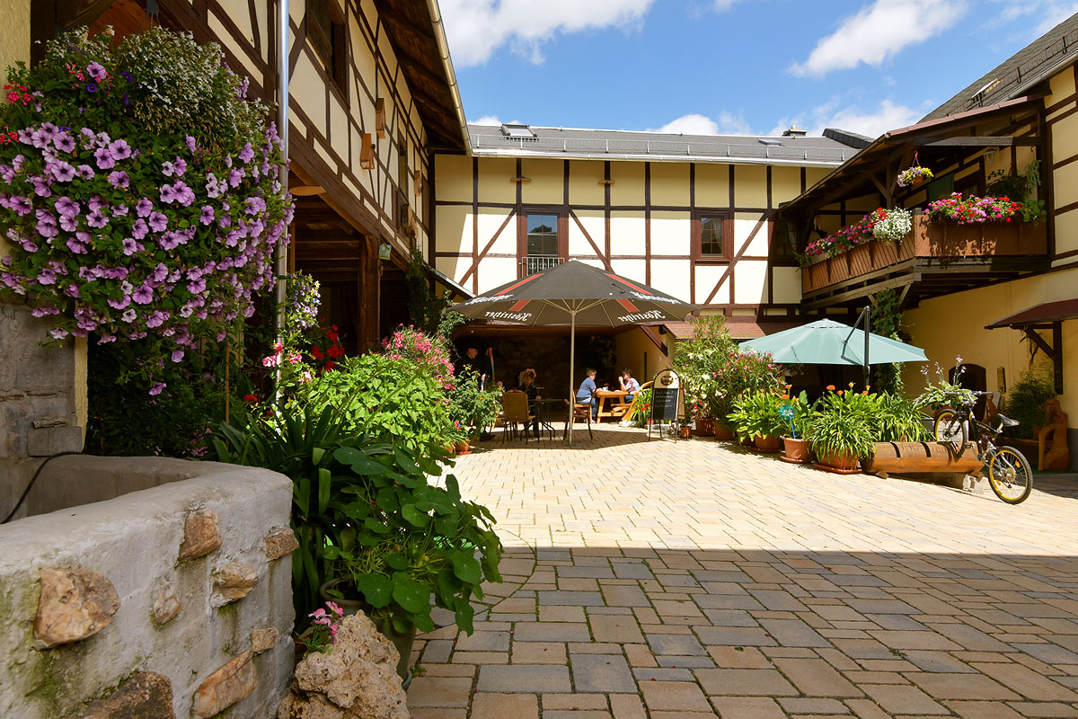 Nur wenige Kilometer von der Bleilochtalsperre, direkt am Saale-Radweg gelegen, erwartet Sie das "Hofcafé Orlamünder" in Gräfenwarth.
