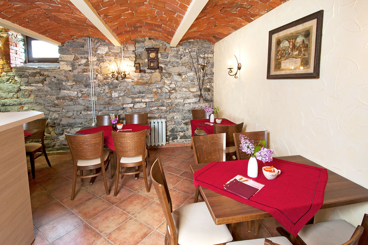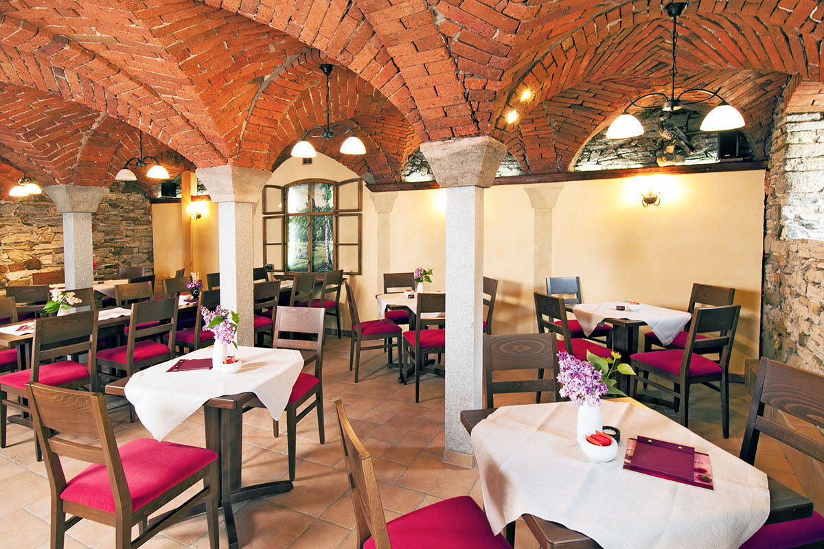 In zwei schön sanierten und restaurierten ebenerdigen Kreuzgewölbekellern finden 32 bzw. 16 Personen Platz. Im Sommer bietet ein mit Blumen und Pflanzen dekorierter Innenhof nochmals Platz für bis zu 30 Personen.