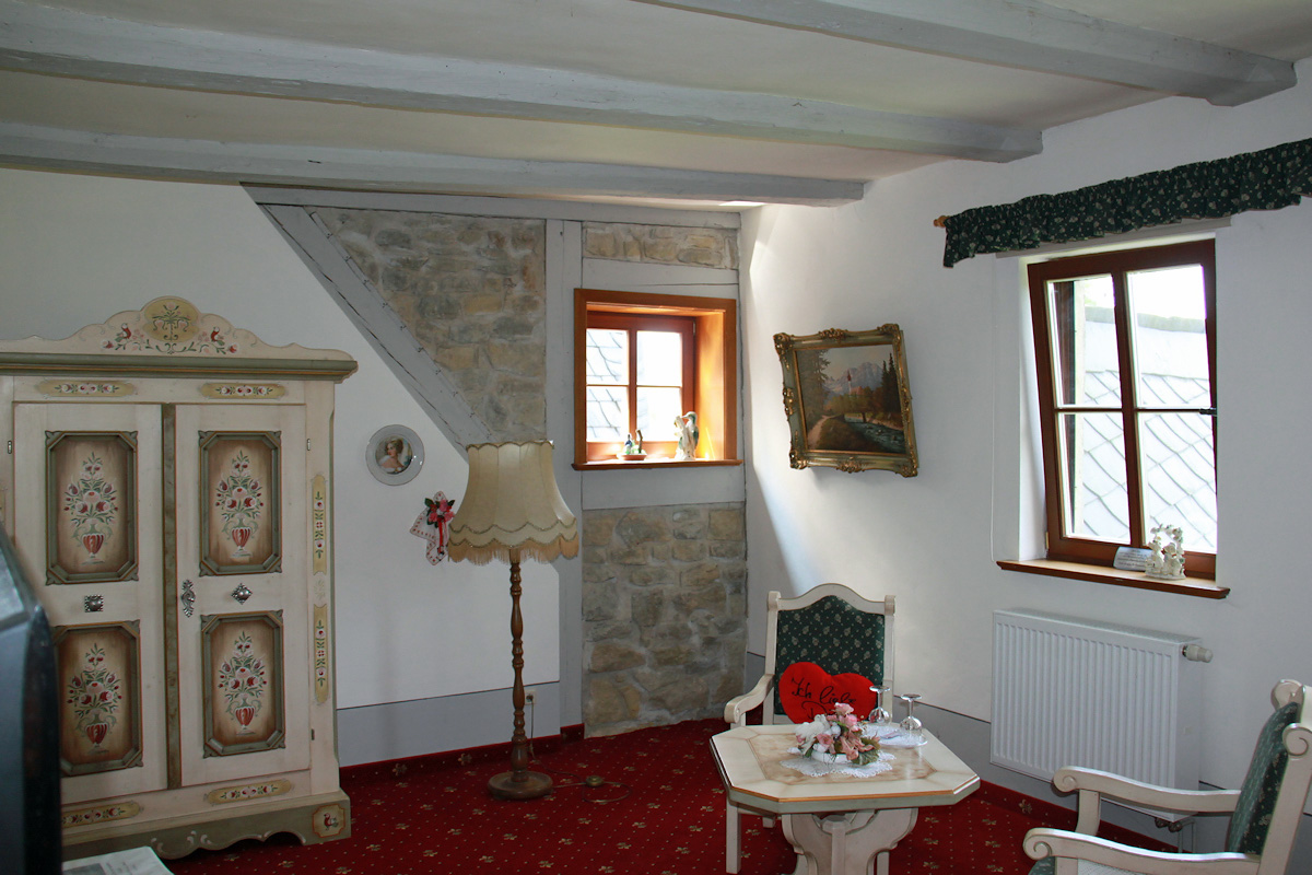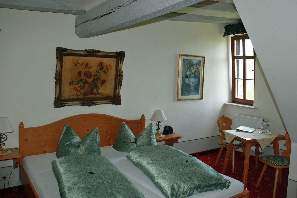 Wir bieten Ihnen 2 Suiten sowie gediegen und rustikal eingerichtete 8 Doppelzimmer, alle mit Kabel-TV, WLAN und Dusche/WC. Moderner Komfort im "alten Gemäuer" - Dank unserer behutsamen Sanierung des Schlosses!
