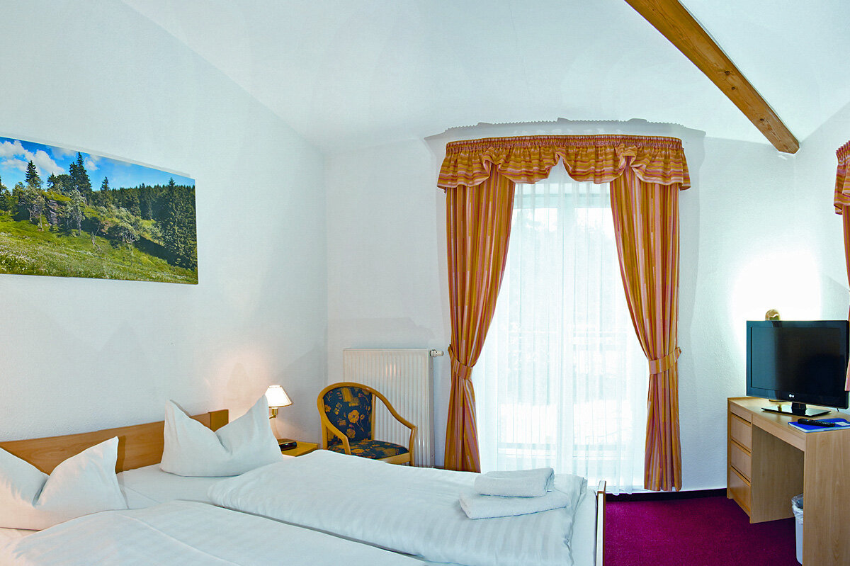 Mit einer Kapazität von 25 Zwei-Bett-Zimmern (darunter 5 mit Balkon und 2 Apartments), sind wir klein aber fein. Neben den Gästezimmern, dem Cafe und der Sauna, werden Sie ein Restaurant, ein Billardzimmer und eine Physiotherm (Wärmelichtkabine) vorfinden.