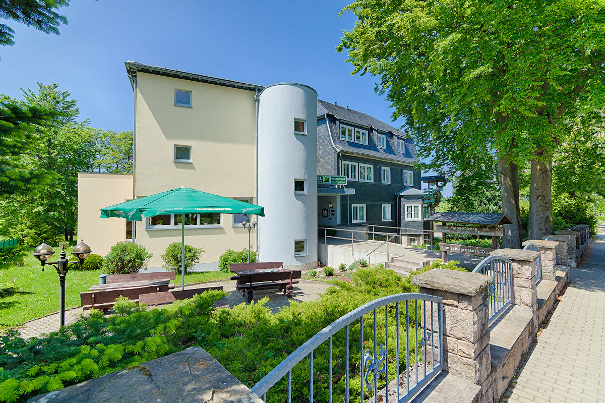 Unser Haus besteht aus einem Alt- und einem Neubau, und besticht durch seine Vielfältigkeit. So haben unsere Gäste zum Beispiel die Wahl zwischen Zimmern im klassischen Stil und Zimmern mit Designmöbelierung. Romantikern bieten wir ein gemütliches Kaminzimmer, Genießern unsere hauseigene Sauna, "Schleckermäulchen" die Leckereien unseres Cafe`s mit Panoramablick ins Tal, ... und für die Wanderfreunde und Entdecker unter Ihnen, viele interessante Routen, durch die wunderschöne Natur des Thüringer Waldes.