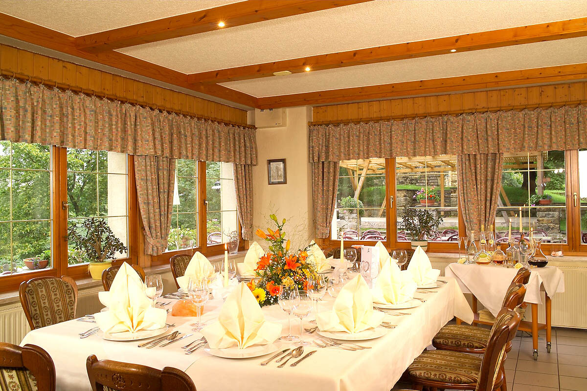 In geschmackvoll dekorierten Gasträumen werden Sie vom Hausherrn persönlich mit seinen Kochkünsten zum Schlemmen verführt. Von feinen Delikatessen über deftige Speisen bis hin zu leichten Gerichten - unser umfangreiches Angebot lässt keinen Ihrer kulinarischen Wünsche offen. Ein ganz besonderer Genuss sind dabei die wohlschmeckenden Spezialitäten aus der original Thüringer Küche, die zum erstklassigen Ruf Thüringens unter den Urlaubsgästen beigetragen haben.