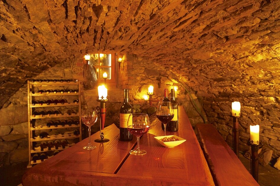 Genießen Sie angenehme Stunden in unserem urigen Weinkeller in gemütlicher Atmosphäre. Bei Kerzenschein, sorgfältig erlesenen Weinen und mediterranen Spezialitäten lassen Sie den Tag in dem charmanten ältesten Gewölbe des Ortes ausklingen.