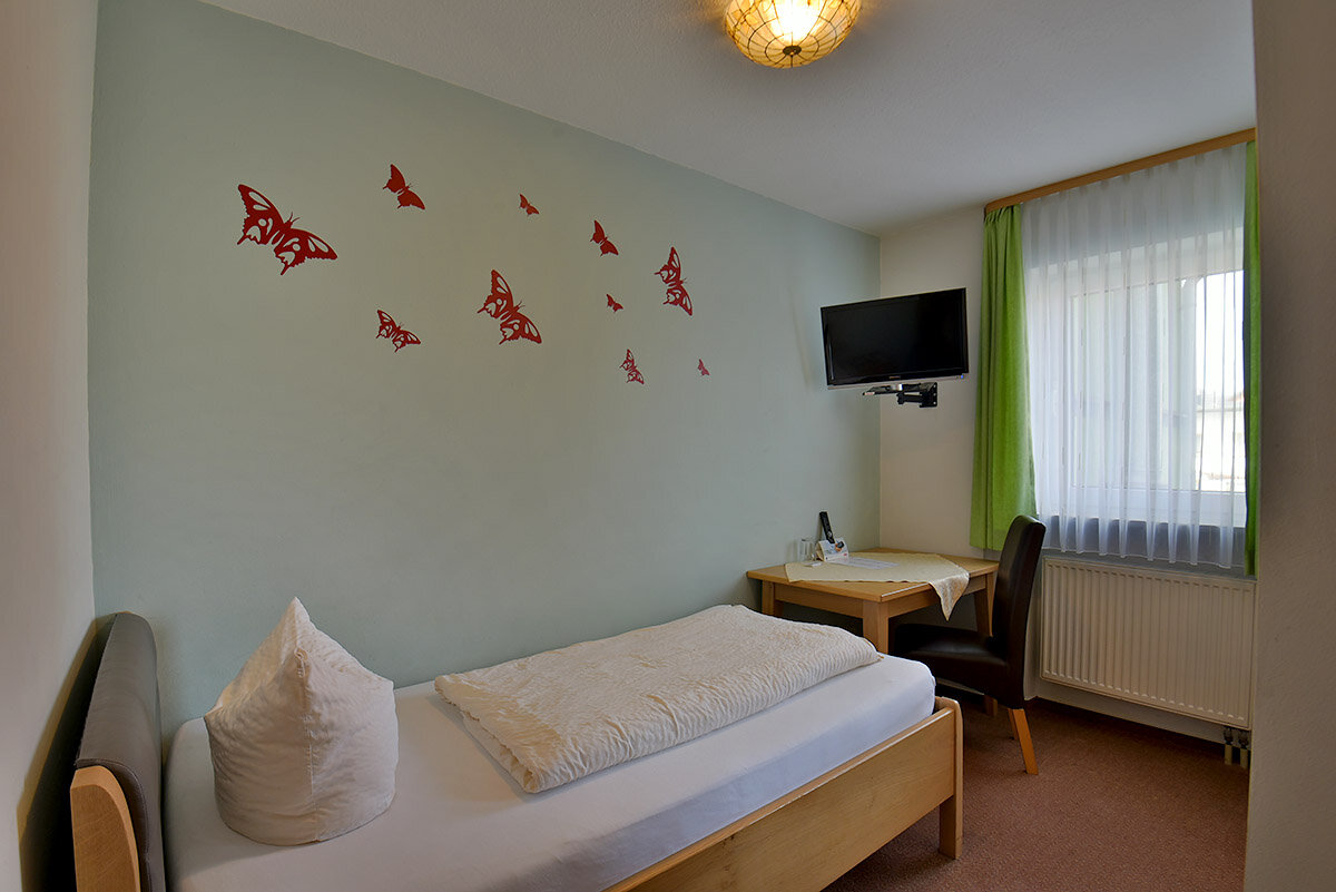 Das Hotel verfügt über eine Kapazität von 27 Betten in 12 Doppel- und 3 Einbettzimmern, Aufbettung möglich. Die Zimmer sind gemütlich und rustikal ausgestattet und verfügen über Dusche und WC, Telefon, Sat-TV und kostenloser WLAN-Zugang.