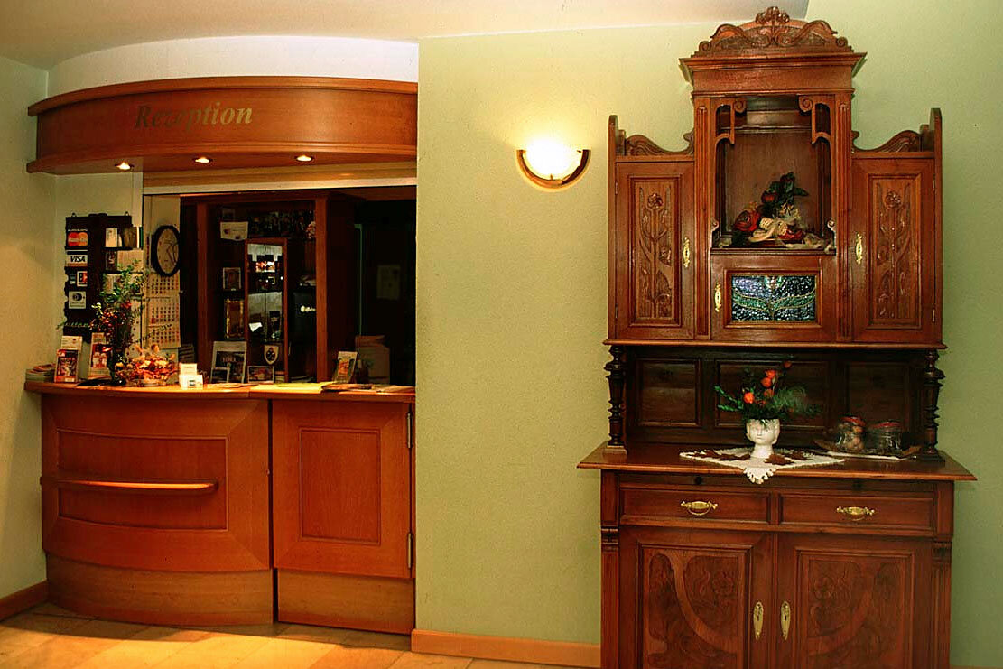 Die schönsten Möbelstücke aus dem 1831 gebauten und 1856 vom Urgroßvater gekauften Gasthof prägen nach denkmalsgerechter Sanierung das besonderere Flair von familienbezogener Gemütlichkeit, z.B im Jugendstil-Saal mit Originalmobiliar von 1912, aber auch die Schränke, Truhen, Kommoden, Stühle, Tische und Lampen aus den vorangegangenen drei Generationen.