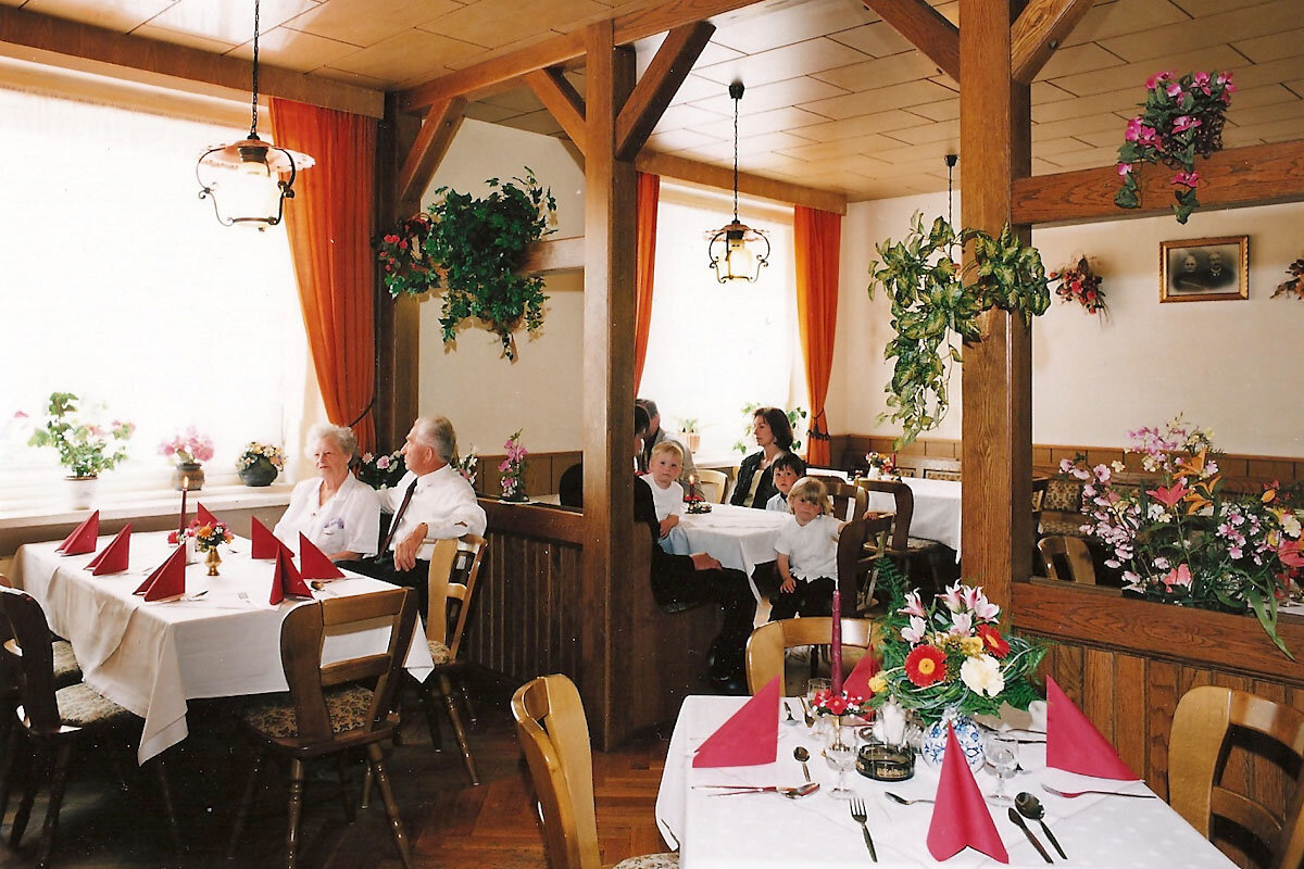 Unser Gastraum bietet 50 Personen Platz. Für Tagungen, Familien- oder Firmenfeiern steht Ihnen unser Saal zur Verfügung.
