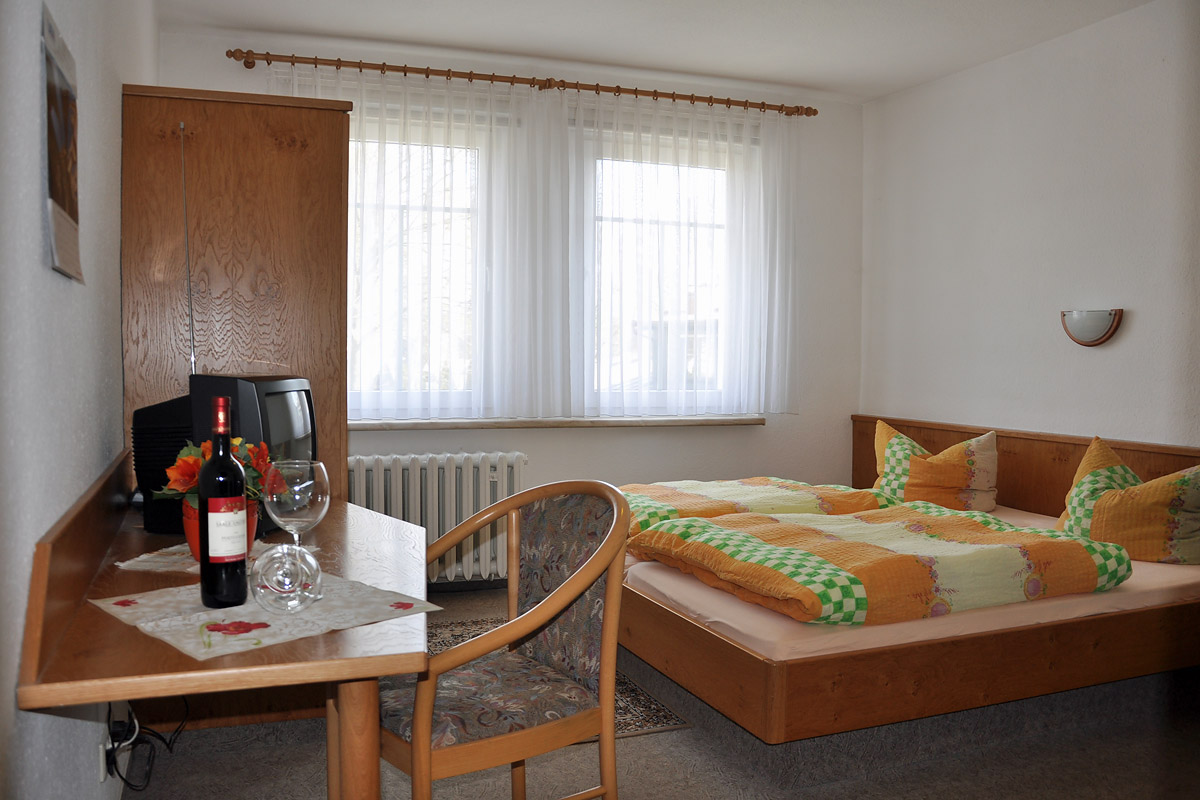 Unsere gemütlich eingerichteten Zimmer verfügen über Dusche/WC, TV und Telefon. Wir bieten Ihnen 4 Doppelzimmer, 1 Dreibettzimmer und 1 Einzelzimmer, außerdem sind Aufbettungen möglich.