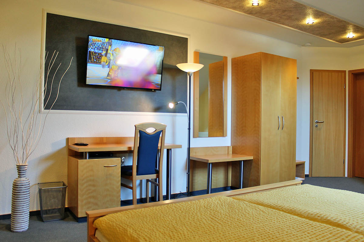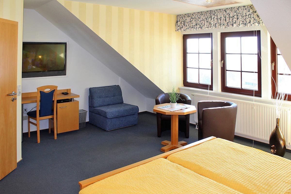 Warme Akzente in geräumigen, lichtdurchfluteten Zimmern finden Sie im Landhotel „Turmschlösschen“.