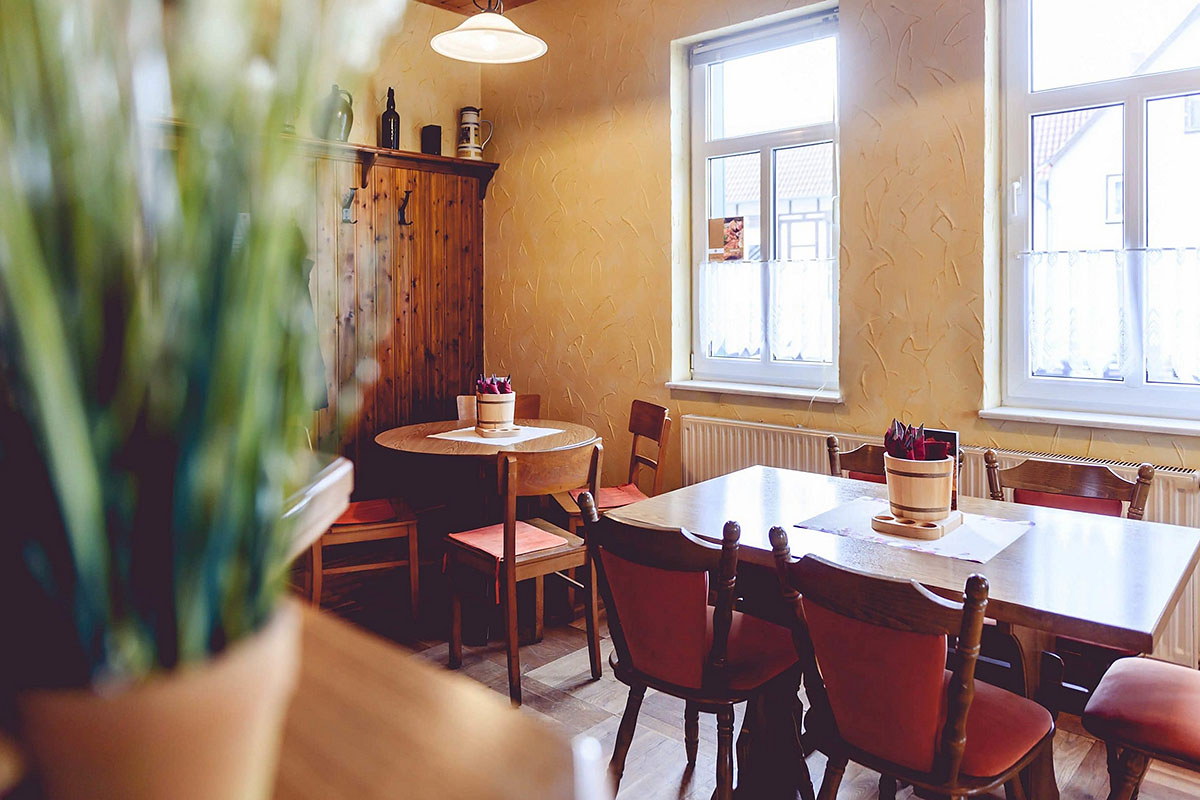 Für Ihr leibliches Wohl steht Ihnen unsere hauseigene Gaststube zur Verfügung. Hier können Sie in gemütlicher Atmosphäre den Tag bzw. die Woche bei einem "guten Tropfen" ausklingen lassen. Im Sommer haben wir unseren Biergarten für Sie geöffnet, wo ein jeder bei Sonnenschein und frischer Luft gern verweilt. Unser kleines Speisenangebot besteht vor allem aus original Thüringer Spezialitäten und anderen warmen sowie kalten Gaumenfreuden, frisch für Sie vom Chef zubereitet. Wir haben zwei verschiedene Biere vom Fass und eine sehr umfangreiche Getränkekarte. Selbstverständlich organisieren wir für Sie Familien- oder Firmenfeiern jeder Art. Bitte kontaktieren Sie uns.