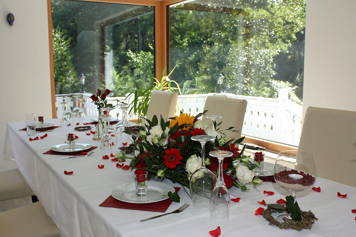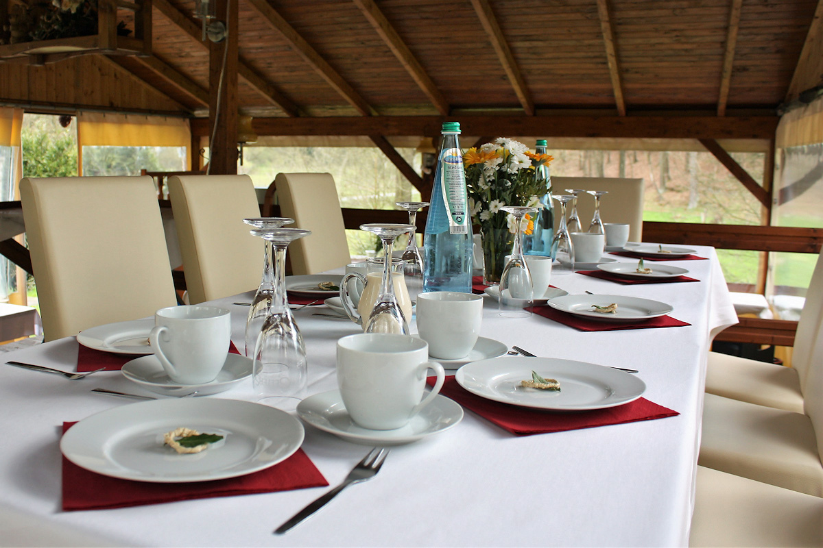Bei Buchung einer Veranstaltung garantieren wir Ihnen eine uneingeschränkte Privatsphäre durch die exklusive Nutzung unserer Räumlichkeiten. Bei warmen Wetter stehen Ihnen eine geräumige Terrasse und unser lichtdurchfluteter Gartenpavillon in grüner Umgebung zur Verfügung.