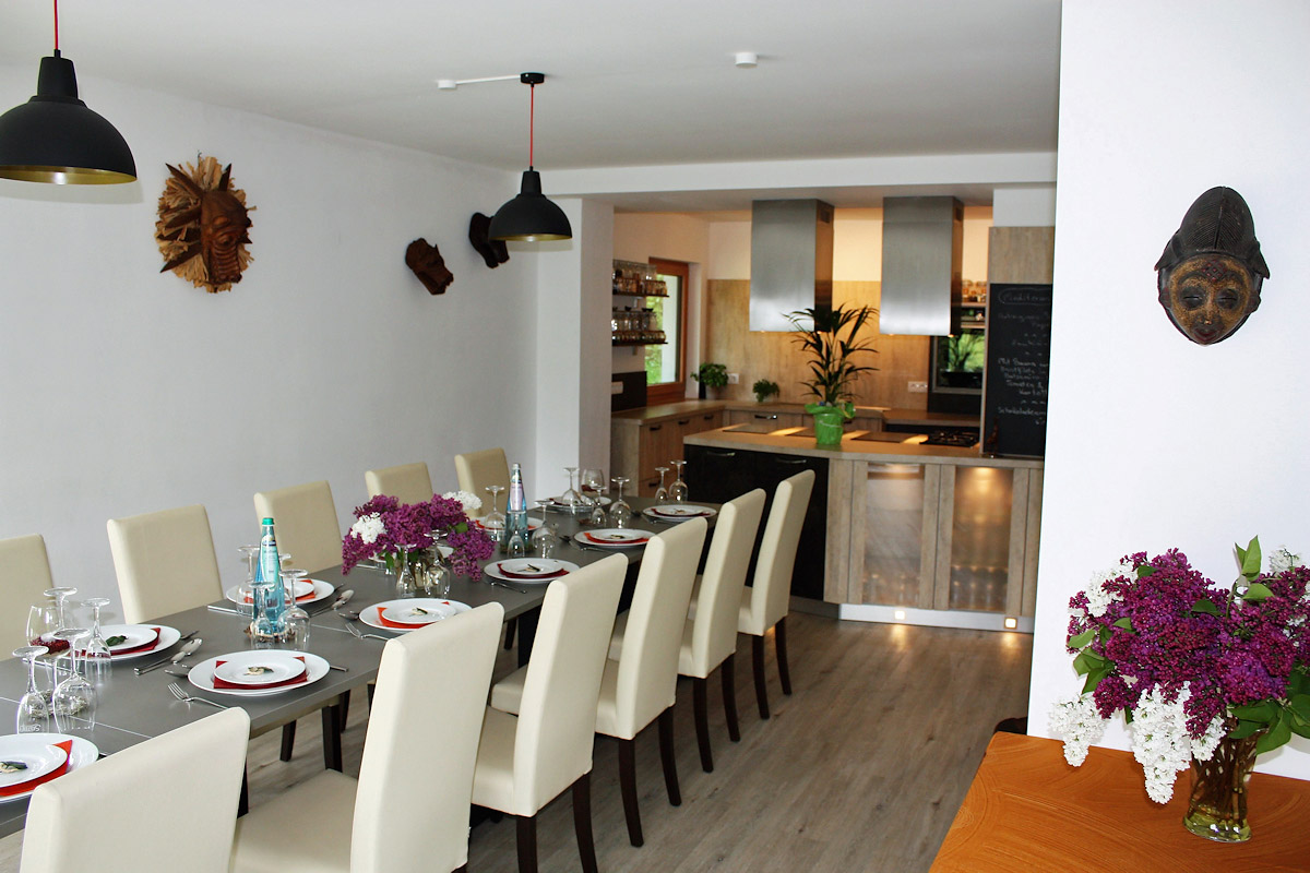 Inmitten dieses idyllischen Setups, das stilvolles Genießen mit einem einzigartigen Naturambiente verbindet, können unsere Gäste bei gemeinsamen Kochabenden die Welt der mediterranen, afrikanischen, lateinamerikanischen und orientalischen Küche entdecken. Wir haben viele kulinarische Anregungen von einem Jahrzehnte langen Aufenthalt im südlichen Afrika mitgebracht. Unsere Kochkurse umfassen die gemeinsame Zubereitung eines 4-Gänge-Menüs und das anschließende Genießen in gemütlicher Runde.