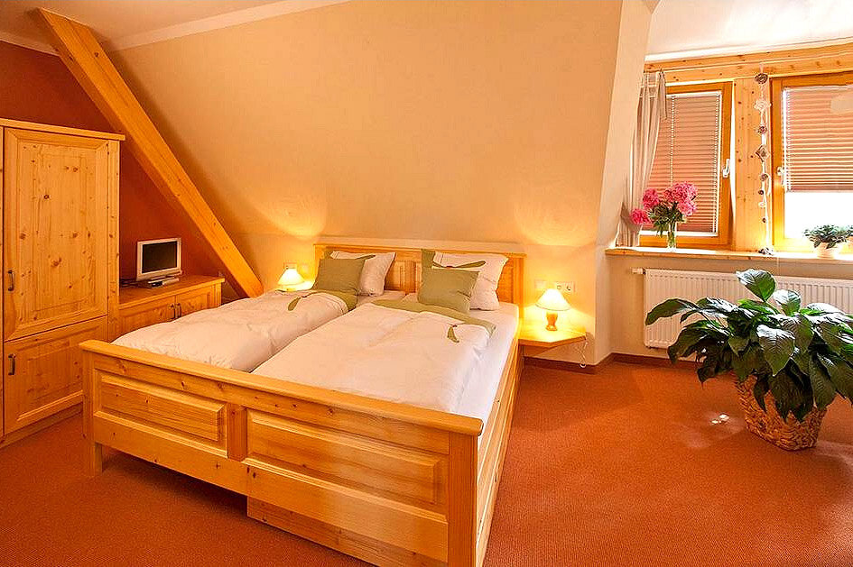 Alle 14 Nichtraucher-Zimmer sind ausgestattet mit von Meisterhand gefertigtem Fichtenmobiliar, TV, Internetzugang und Bad mit Dusche. Der Hotelaufzug bringt Sie bequem hinauf zu Ihrem Zimmer.