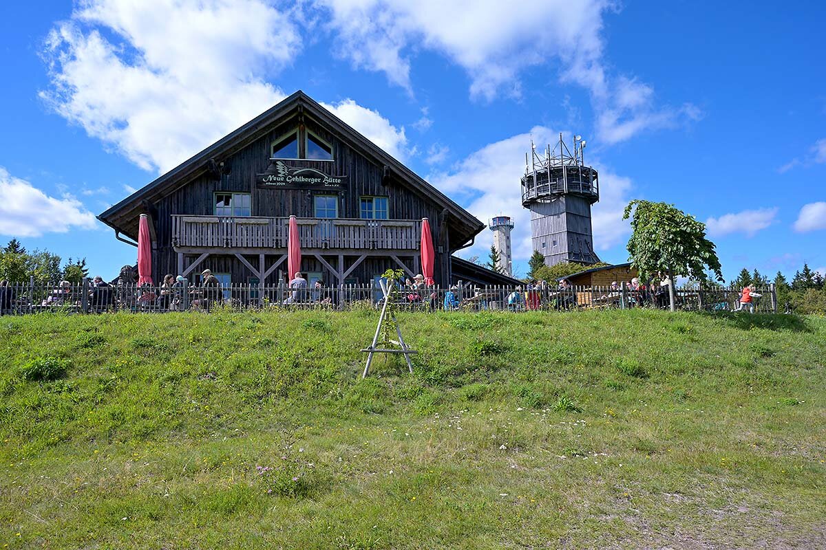 Die Neue Gehlberger Hütte befindet sich auf dem 978 m hohen Schneekopf.