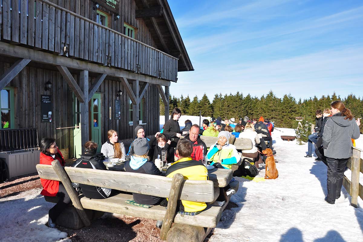 Die Neue Gehlberger Hütte hält in der Gaststube ca. 30 Plätze und auf der Terrasse ca. 40 Plätze für Dein Verweilen bereit.