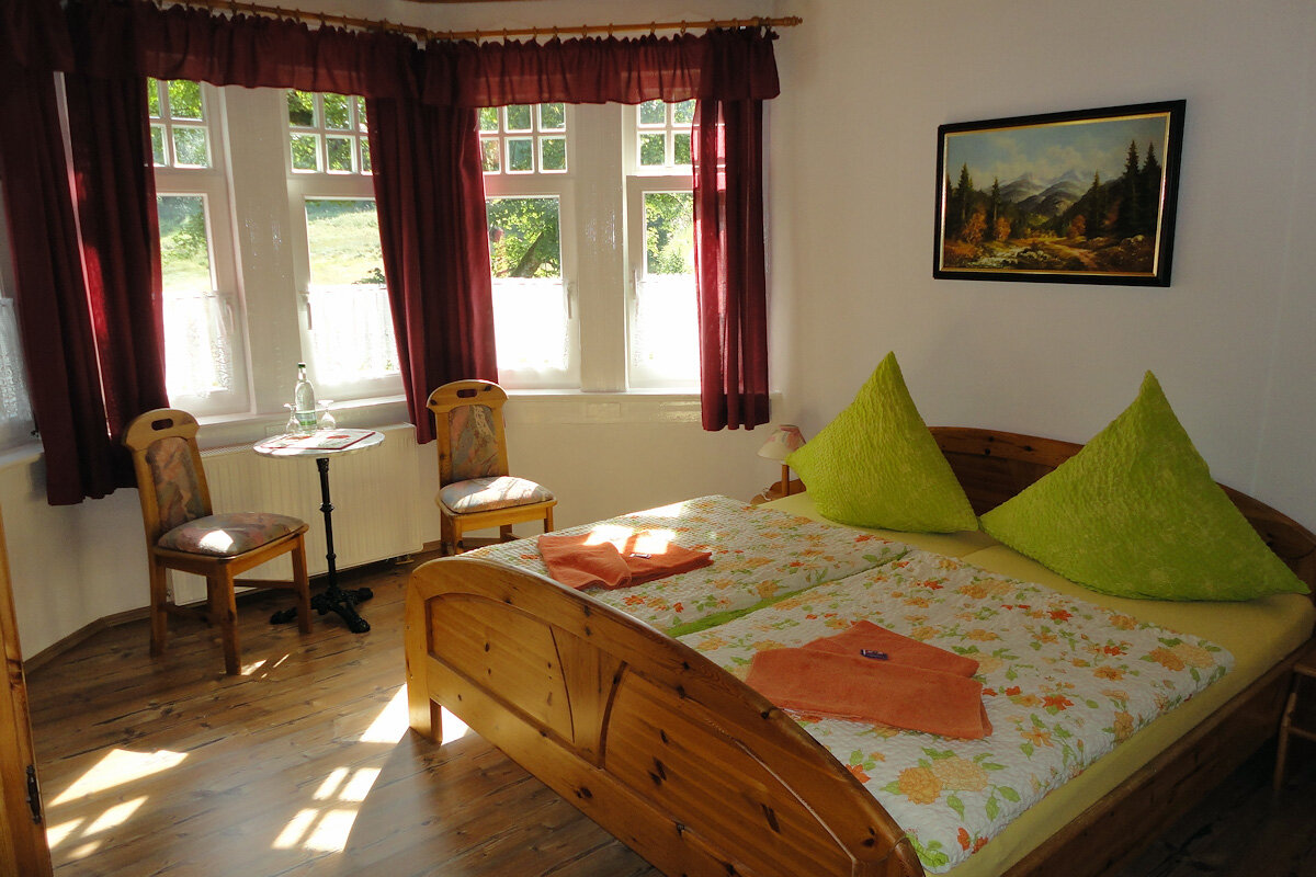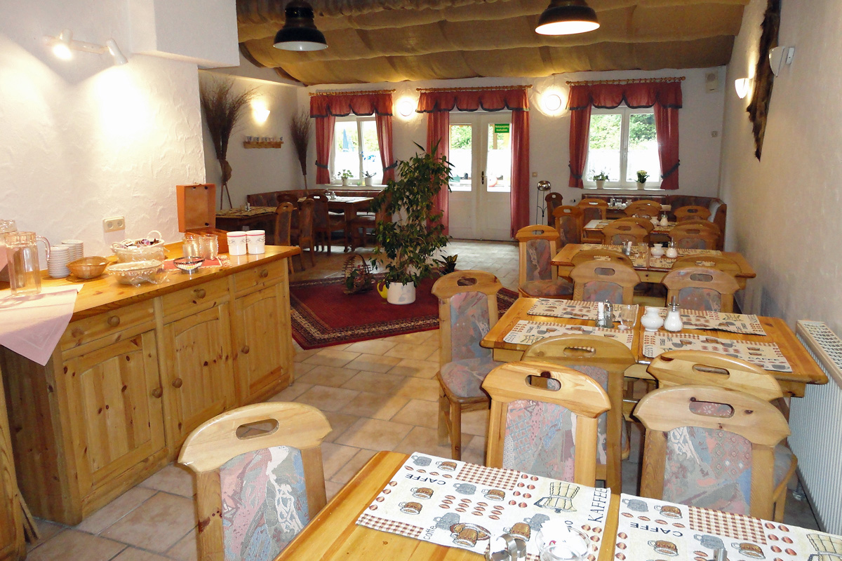 In unseren Gasträumen verwöhnen wir Sie mit frisch zubereiteten Thüringer Gerichten und leckeren Kuchen. Hier können Sie sich gemütlich von Ihren Wanderungen ausruhen (im Winter manchmal auch am Kamin) oder in den Sommermonaten auf der Terrasse die umliegende Natur und unsere "Oase der Ruhe" genießen.