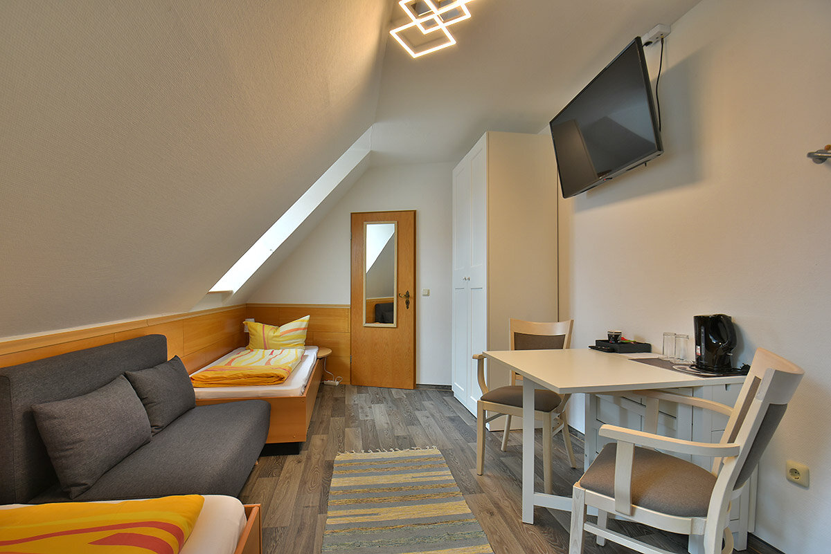 Die individuell eingerichteten Nichtraucherzimmer verfügen über Dusche/WC, Haartrockner, Sat-TV, Klimaanlage sowie kostenloses WLAN. Ein reichhaltiges Frühstücksbuffet im Frühstücksraum mit kleiner Terrasse sorgt für einen guten Start in den Tag. Stellplätze für Fahrräder sowie PKW sind vorhanden.