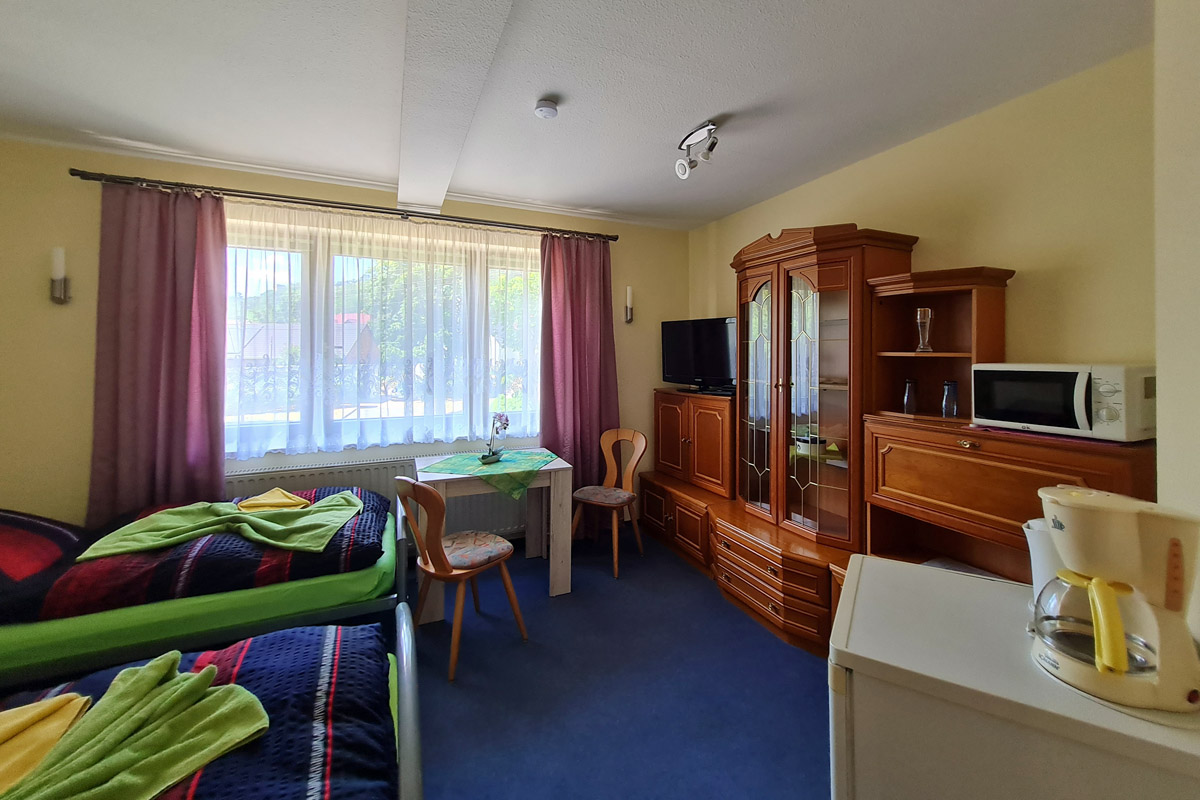 Wir verfügen über: 3 Doppelzimmer, 9 Einzelzimmer sowie 1 Ferienwohnung.