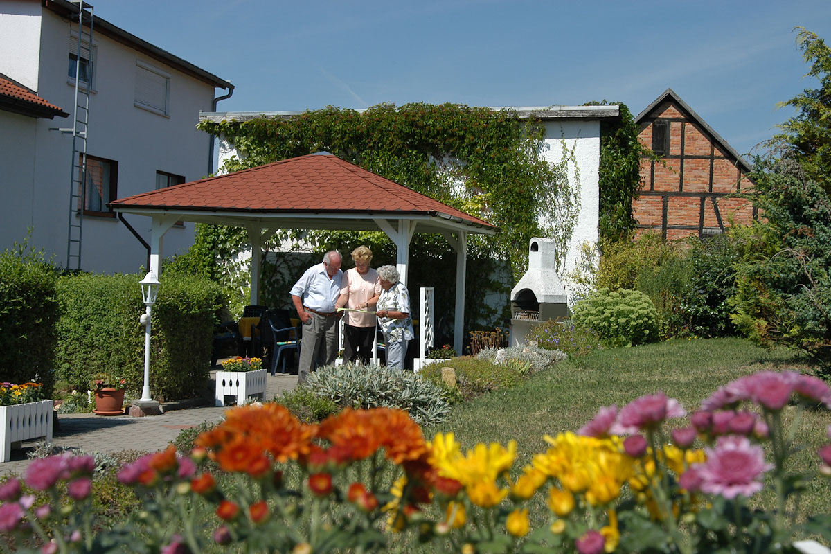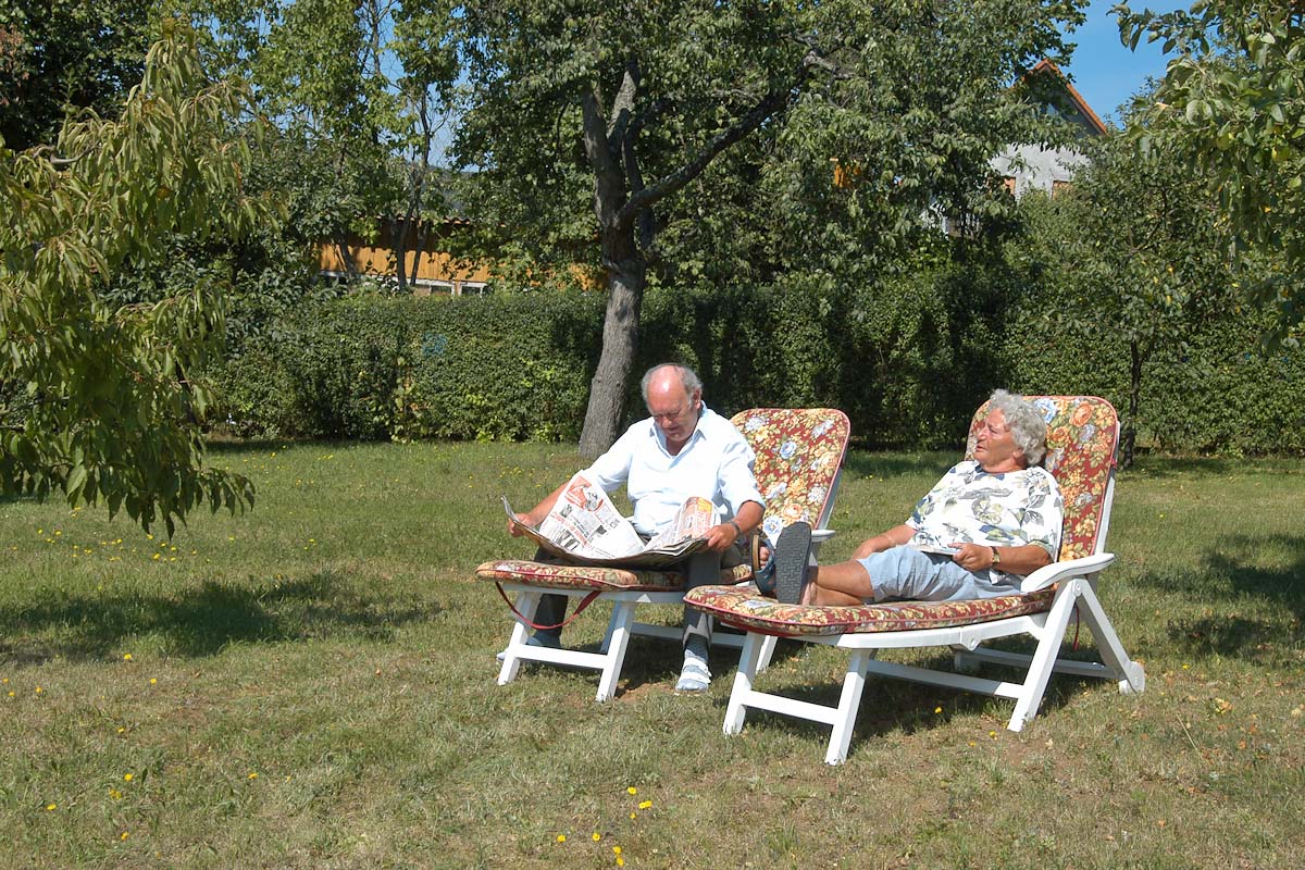 Entspannen und sonnen Sie sich in den Sommermonaten in unserem großen Garten mit Liegewiese und Gartenmöbeln. Hier haben Sie auch die Möglichkeit, sich die Abende am offenen Kamin mit Thüringer Spezialitäten selbst zu gestalten.