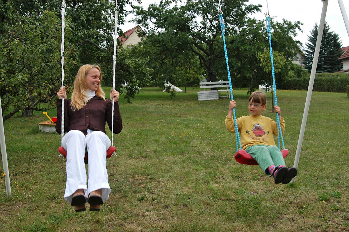 Für Kinder befindet sich im Garten ein kleiner Spielplatz mit Sandkasten und Schaukel.