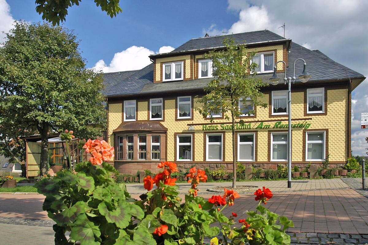 Doe Pension "Haus Saarland" befindet sich am oberen Ende der Fußgängerzone in der Zellaer Straße. Von hier aus erreichen Sie zu Fuß in wenigen Minuten