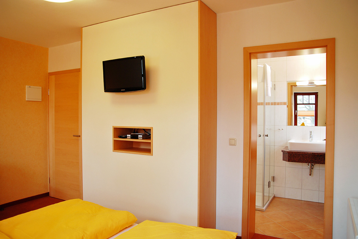 Unsere gemütlich eingerichteten Zimmer mit modernen Bad mit Dusche, WC und Föhn sowie unsere Ferienwohnung bieten Ihnen echte Wohlfühlatmosphäre.